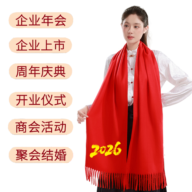 淘宝中国红围巾定制公司年会大红婚庆祝寿生日同学聚会活动印字绣LOGO