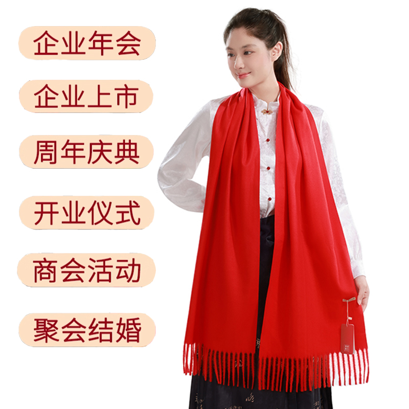 中国红围巾定制刺绣logo公司会议年会活动同学聚会披肩大红色围脖
