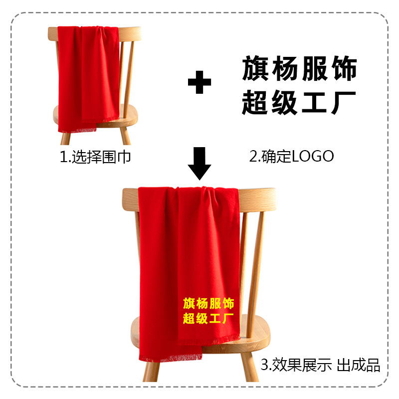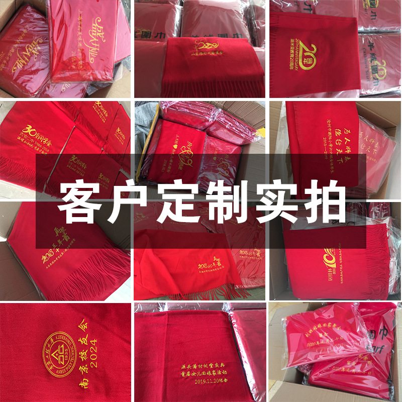 年会中国红围巾定制印logo 公司活动大红色同学聚会刺绣印字