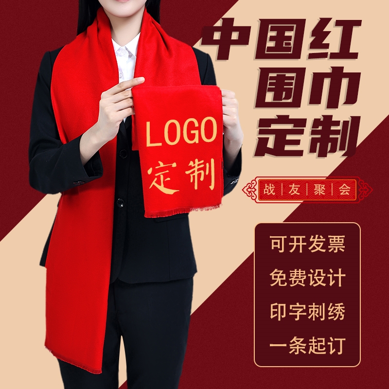 天红围巾定制公司年会80大寿同学聚会20年宗祠祭祖回门纪念印字logo
