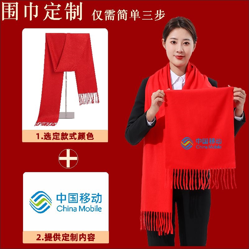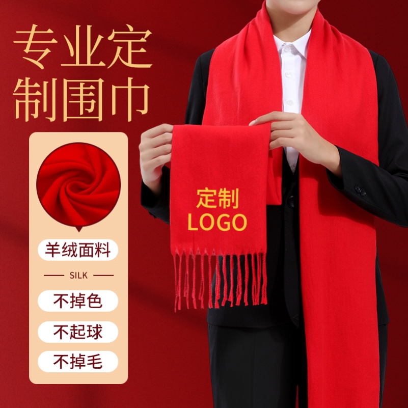 淘中国红围巾定制刺绣logo年会男女公司企业活动聚会大红色披肩围脖