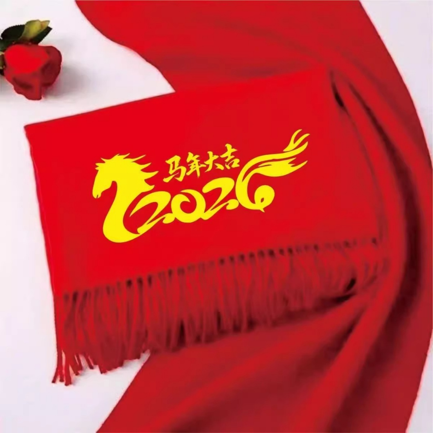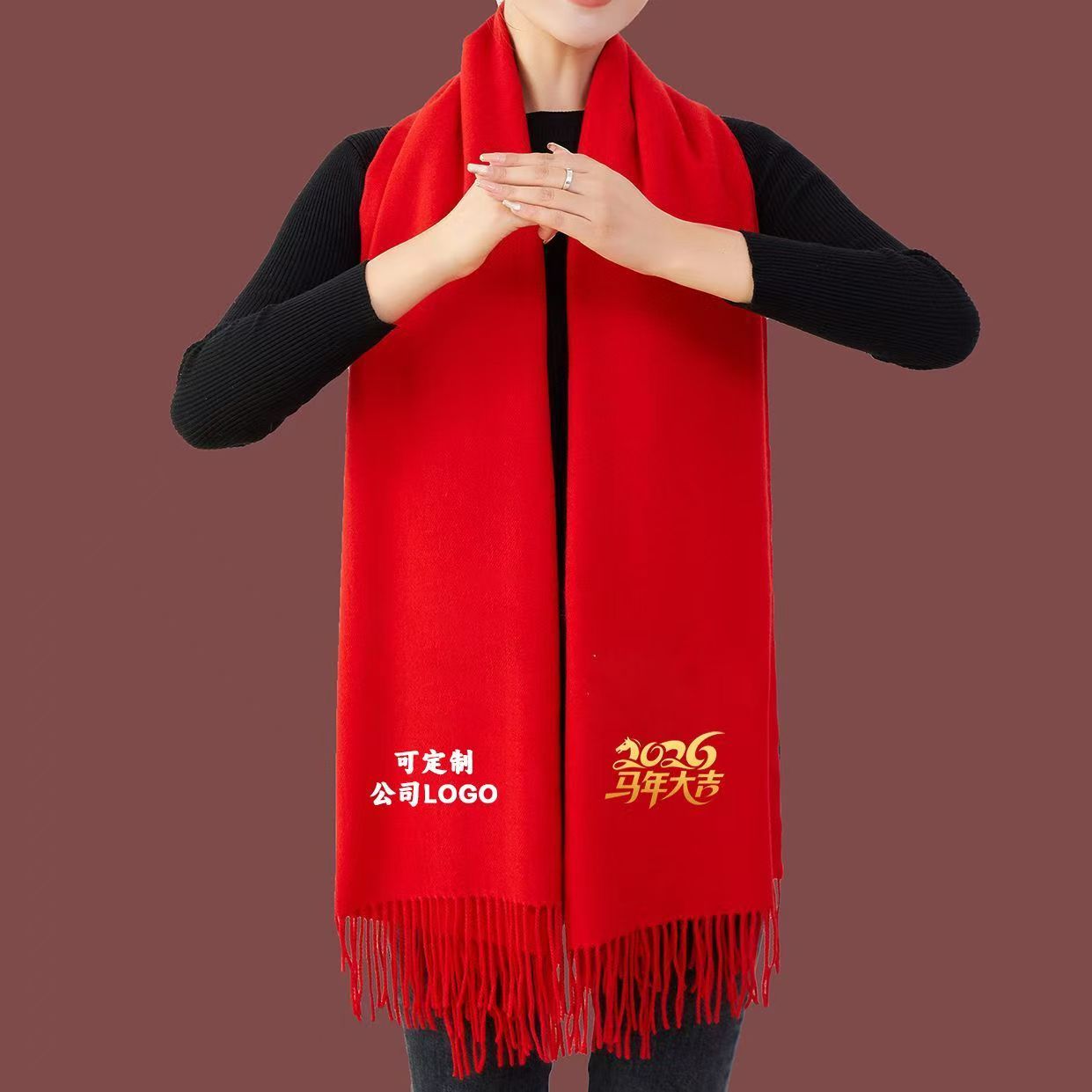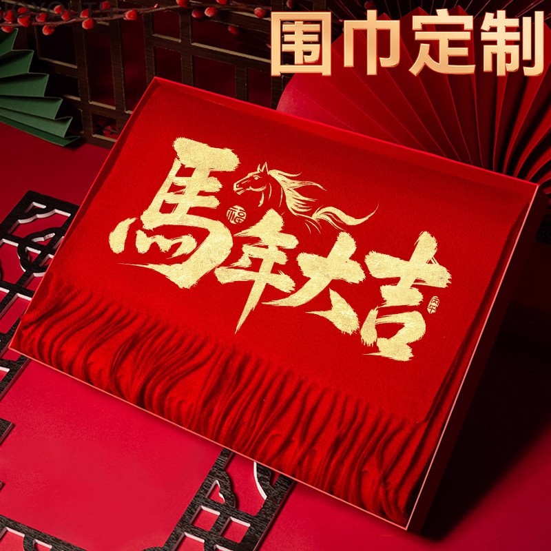 淘宝2026新款本命年马年围巾定制中国红秋冬刺绣图案企业年会围脖礼品