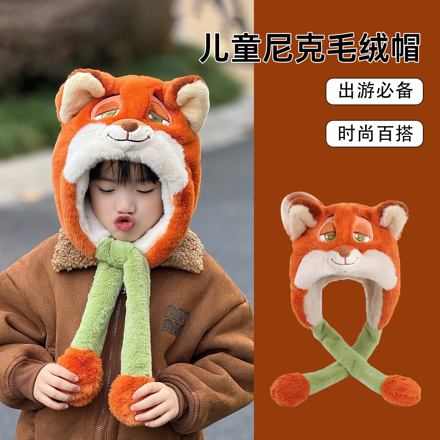 淘宝狐狸尼克帽子围巾一体儿童围脖耳朵会动的冬季男孩疯狂动物城朱迪