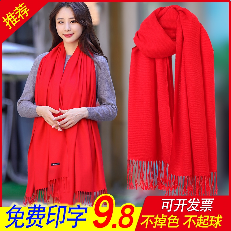 淘中国红围巾刺绣印Logo字公司年会活动同学聚会婚庆制作羊绒红围巾