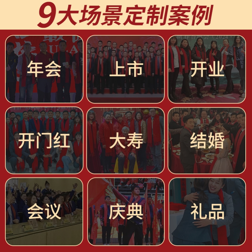 淘定制中国红围巾年会印字logo企业礼品生日寿宴祝寿70 80大寿90岁