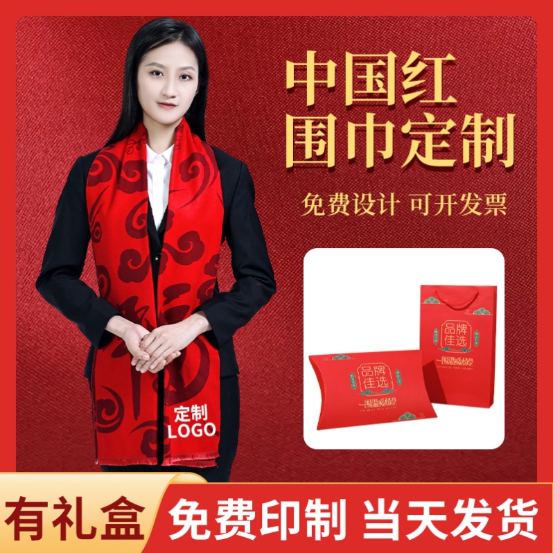 中国红围巾定制印logo公司年会庆典大红色围巾披肩纪念品围脖订做