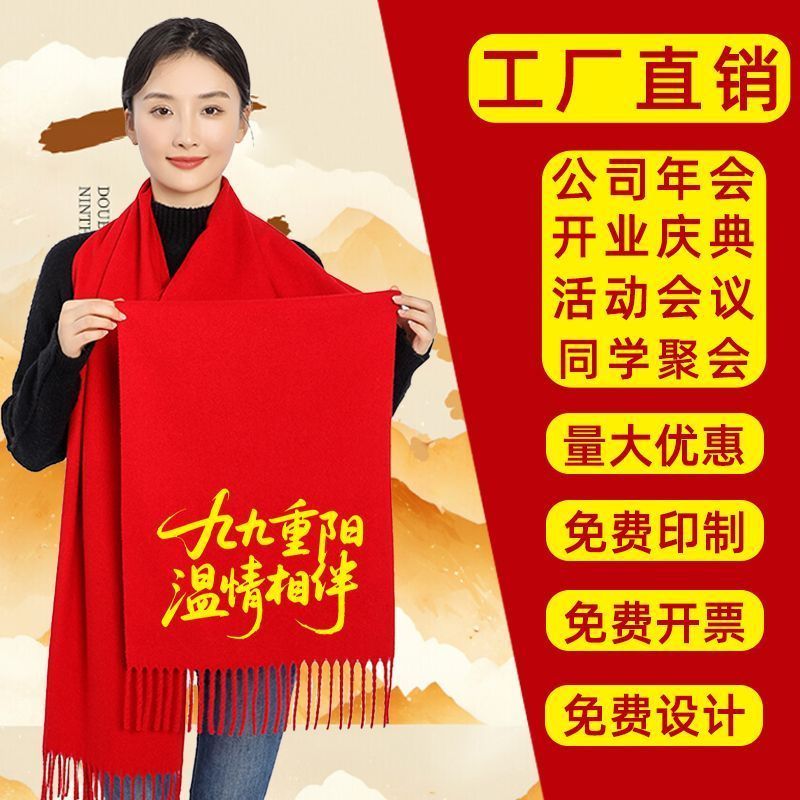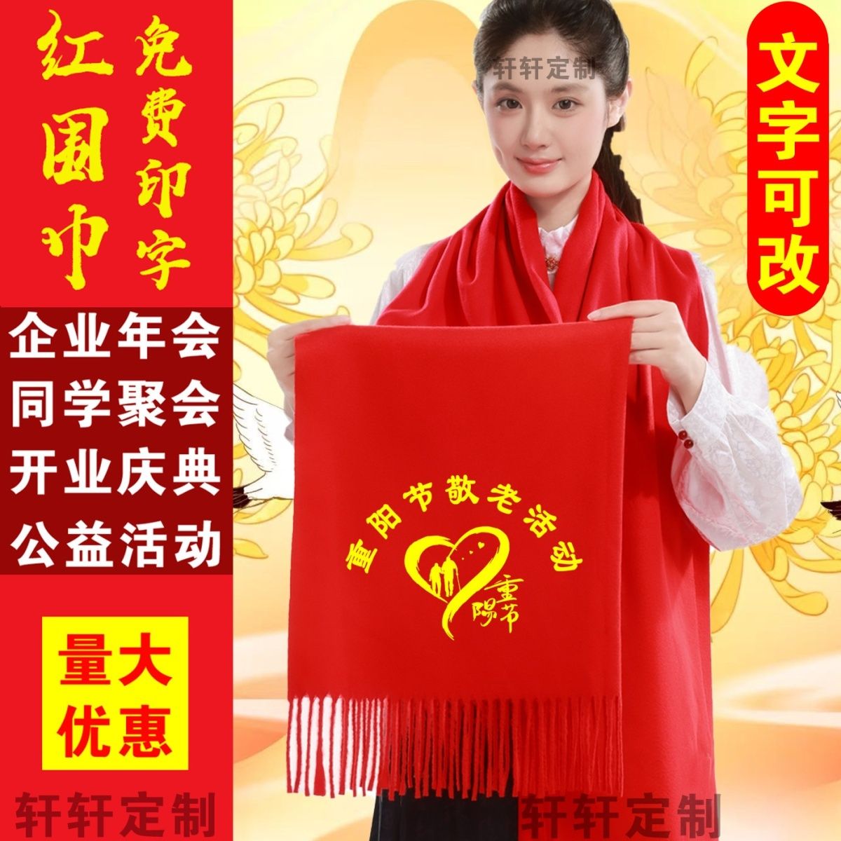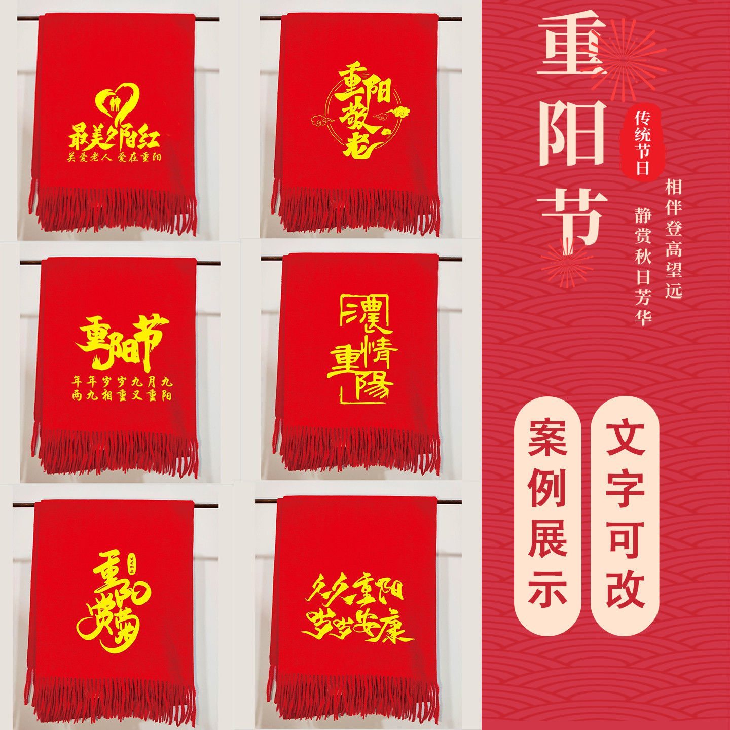 淘宝九九重阳节敬老红围巾定制送老人礼品中国红围巾定制印字聚会活动