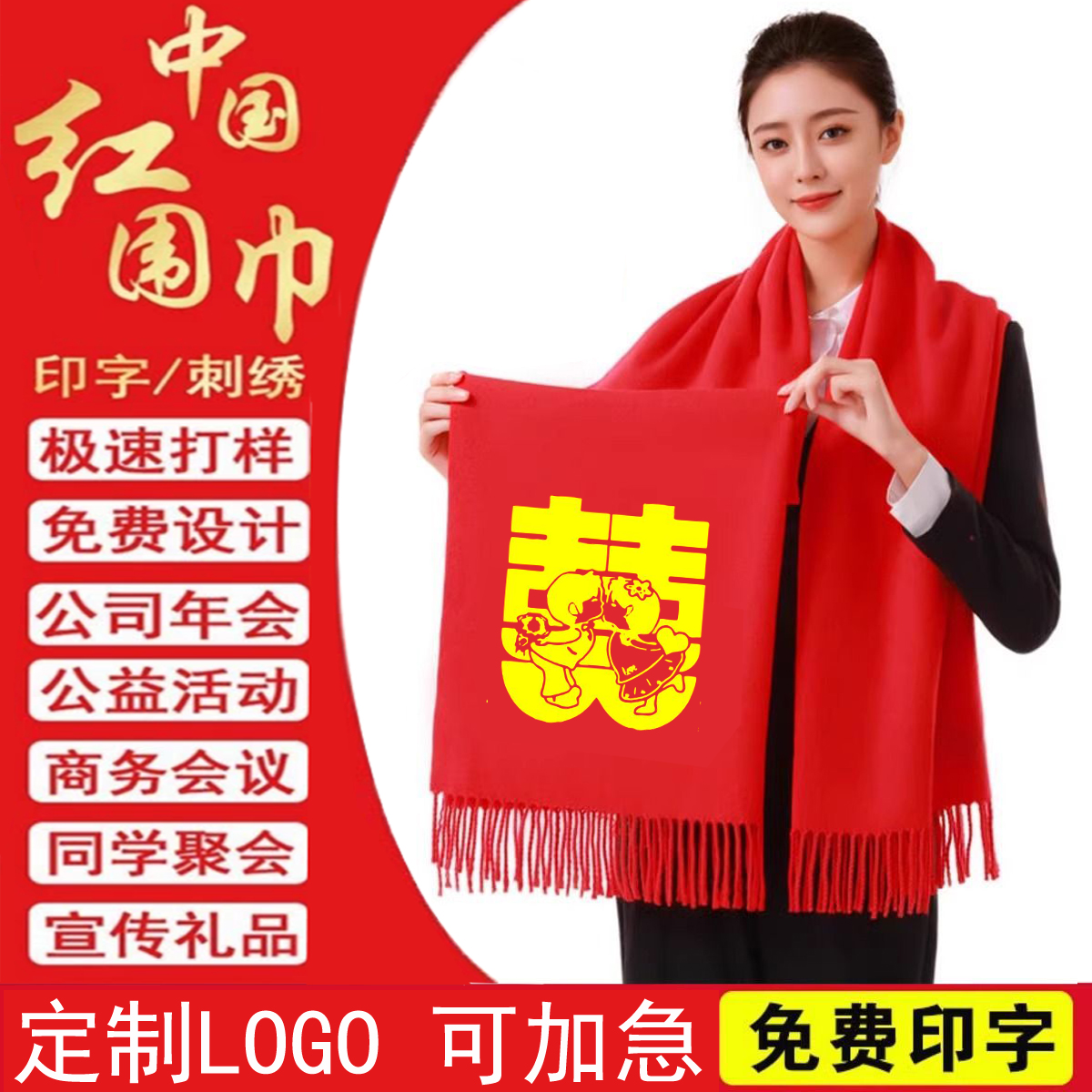 年会红围巾定制logo公司庆典同学聚会老人过寿结婚红围巾定制印字