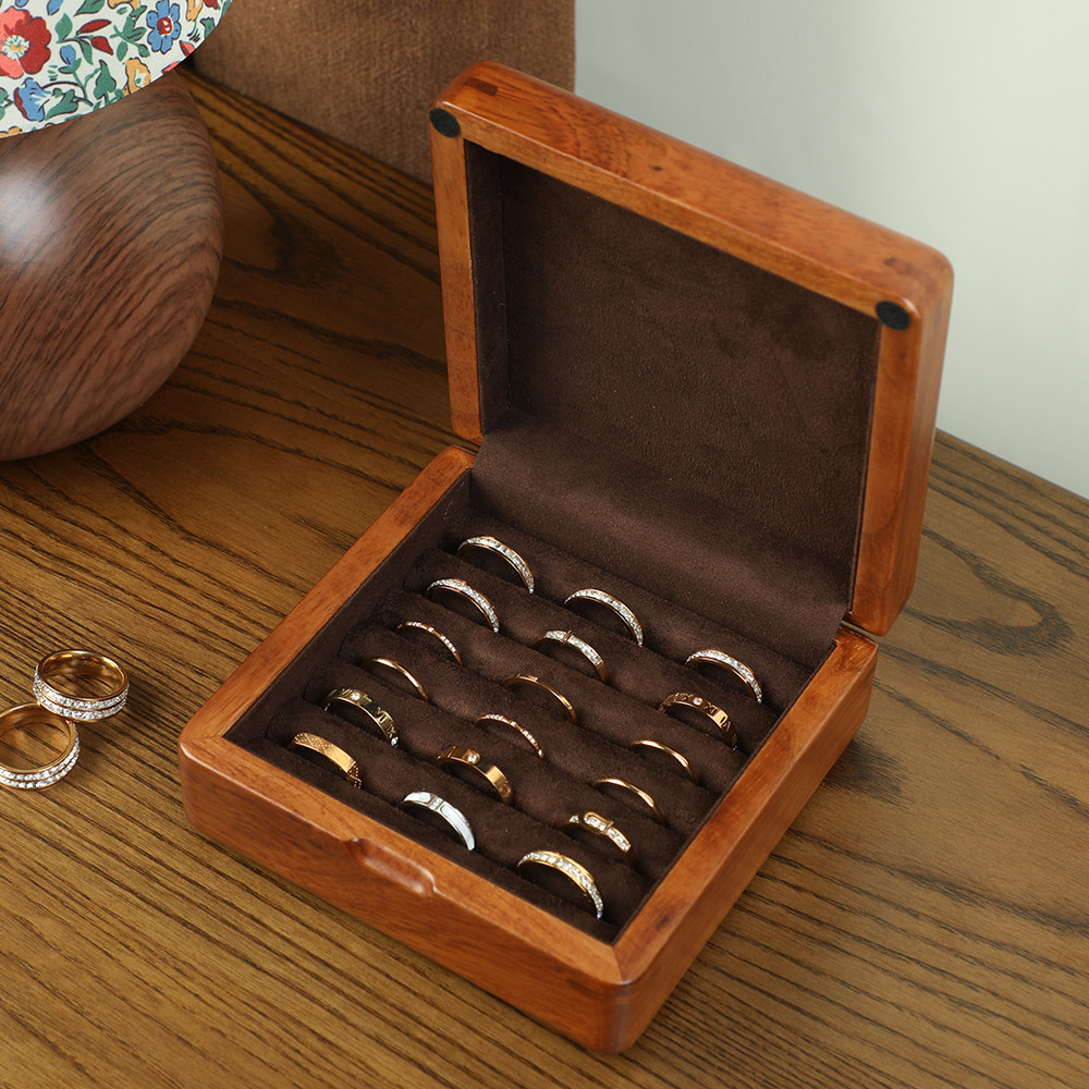 匠功夫纯实木戒指盒,精选优质天然木材,手工打磨,质感温润,纹理自然。小巧精致的迷你设计,集戒指、耳钉、袖扣、吉他拨片等多功能收纳于一体,分区合理,取放便捷。盒盖采用磁吸或翻盖设计,开合顺畅,密封性好,有效防尘防潮。无论是自用还是作为礼品赠送,都彰显品味与心意。环保清漆涂装,保留木材原始触感,安全无毒。匠功夫坚持传统工艺与现代美学结合,每一款收纳盒都是匠心独运的艺术品,为爱物提供贴心守护,让日常收纳更添雅致与温度。