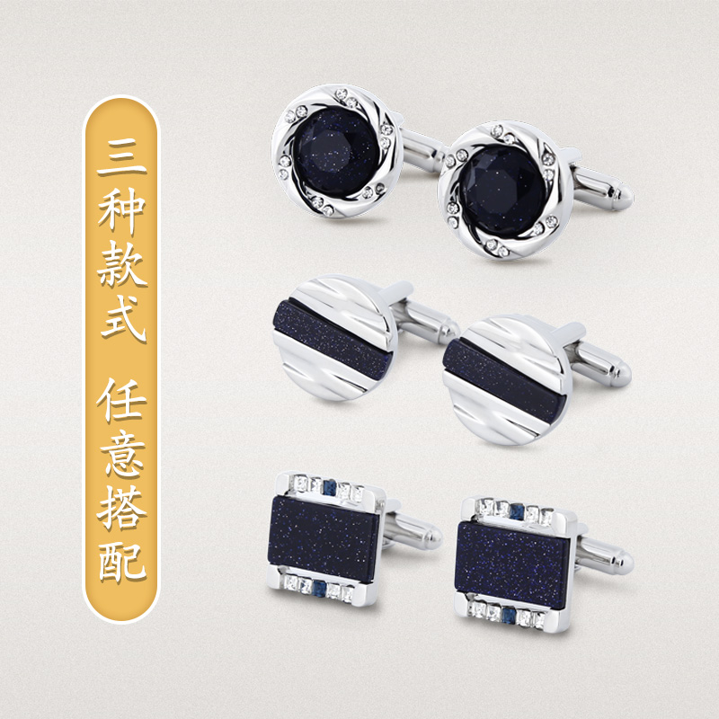 天法式袖扣男士袖钉衬衫袖口扣 正装商务长袖双层折叠袖口扣 礼盒装