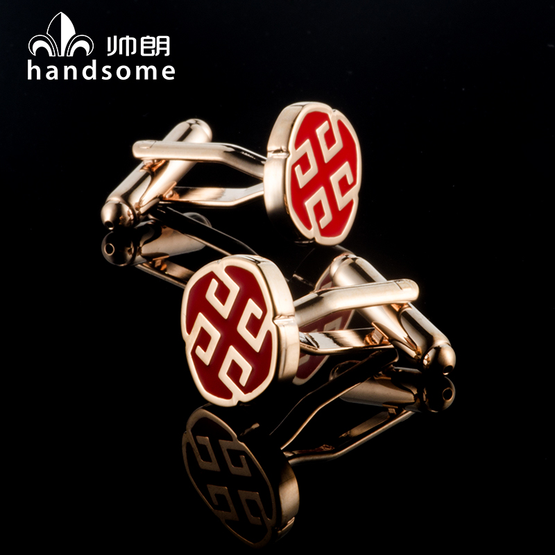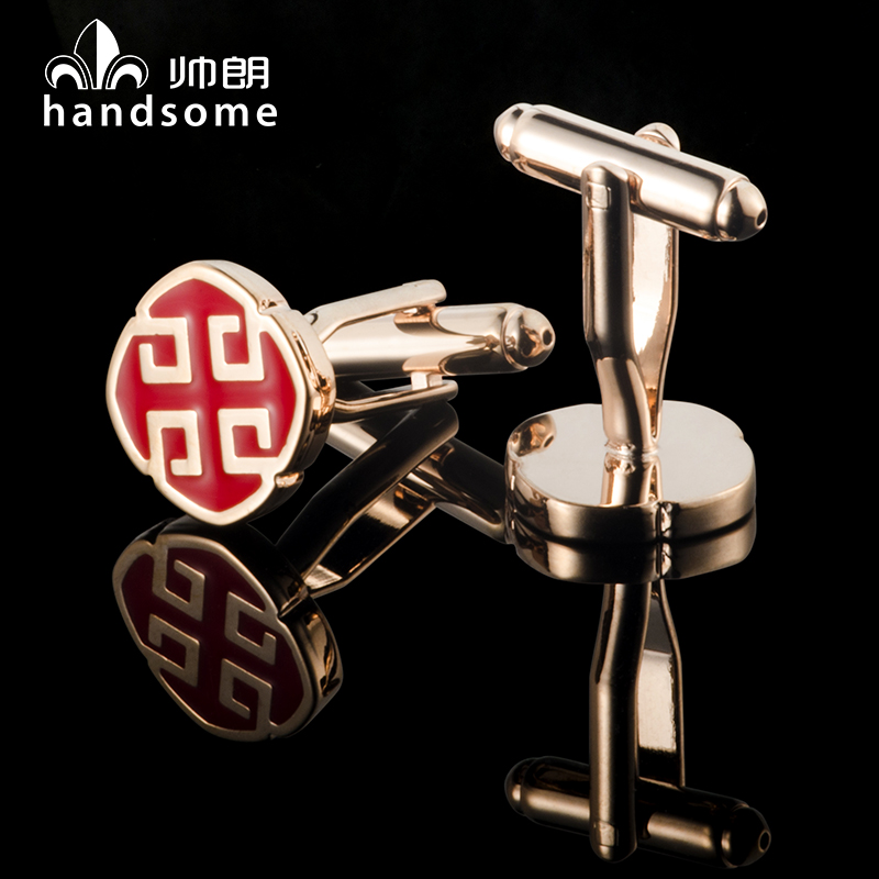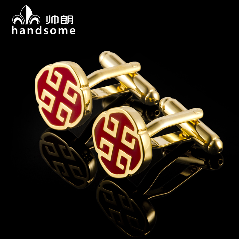 淘宝镀金红色袖扣男士婚礼服法式西装袖钉商务正装衬衫袖口扣送礼盒装