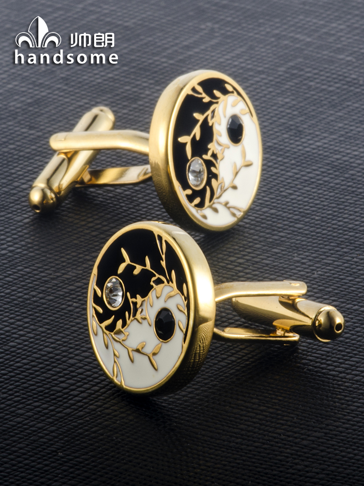 淘宝镀金太极双仪图中国风婚礼服法式衬衫袖口扣男士袖扣袖钉送礼盒装