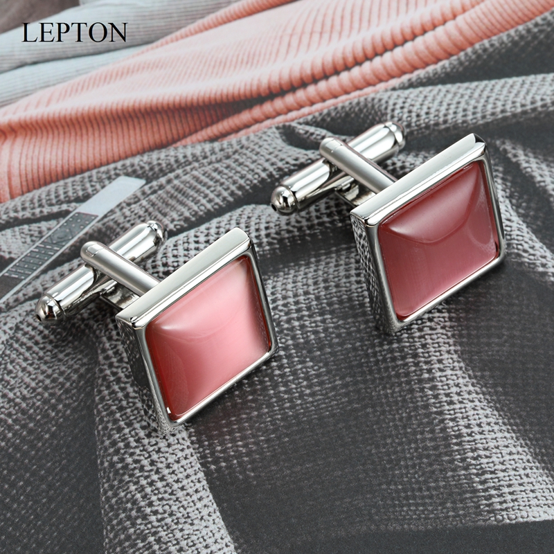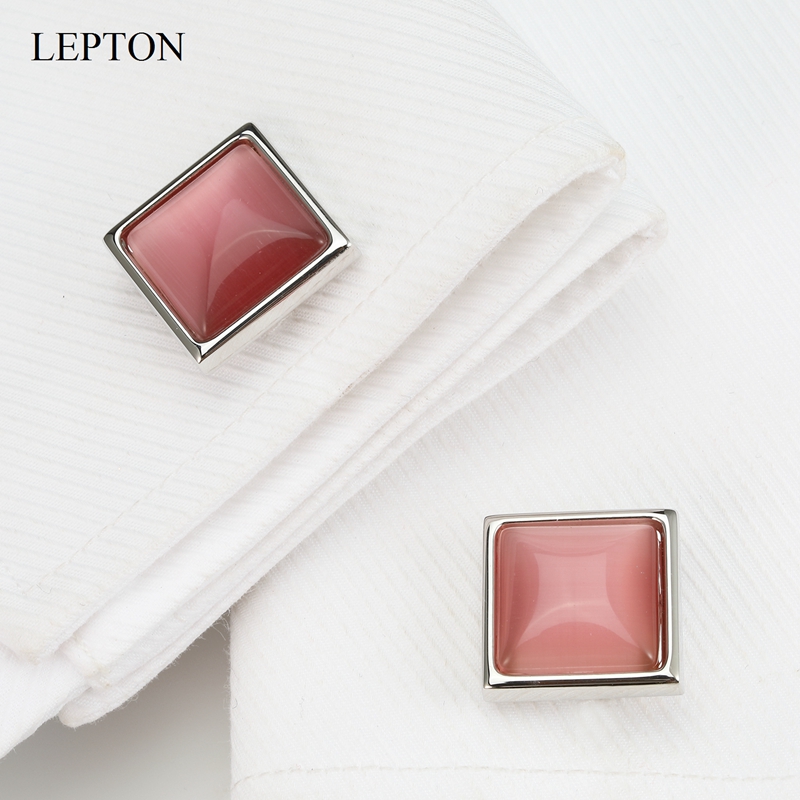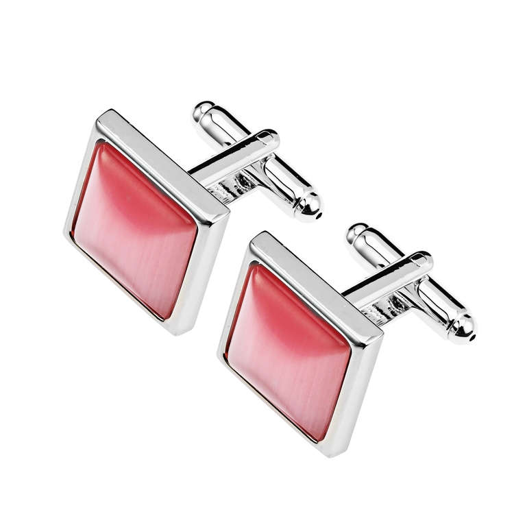 淘宝包邮法式袖扣方形粉红猫眼石袖扣男士衬衫商务礼品cufflinks