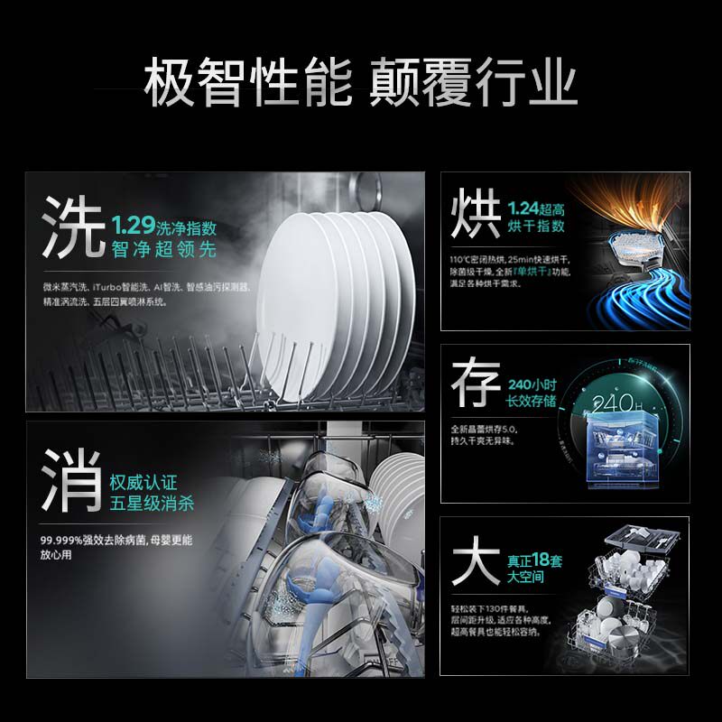 美的洗碗机X6SMax全自动家用万向变频18套嵌入式智能清洁消毒烘干