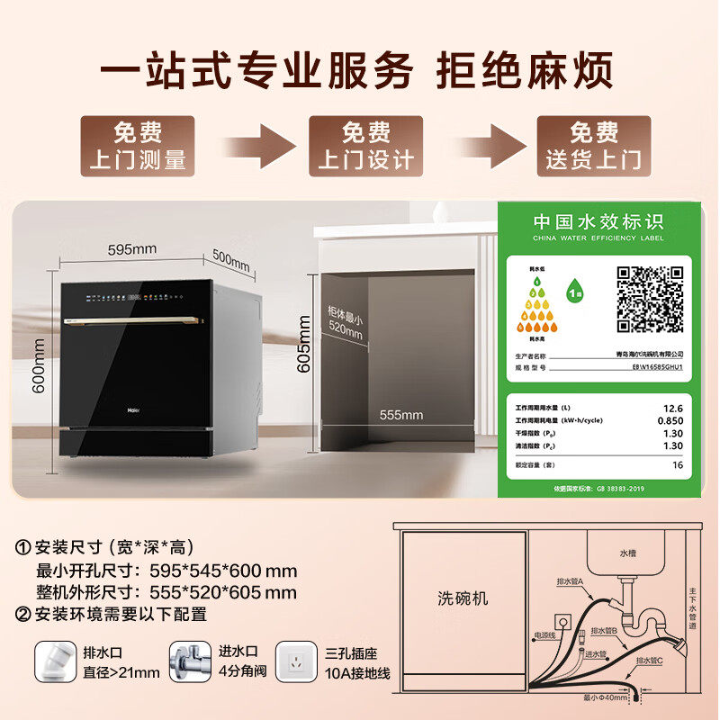 淘宝Haier/海尔 EBW16585GHU1灶下款洗碗机16套7天长效净存Z16