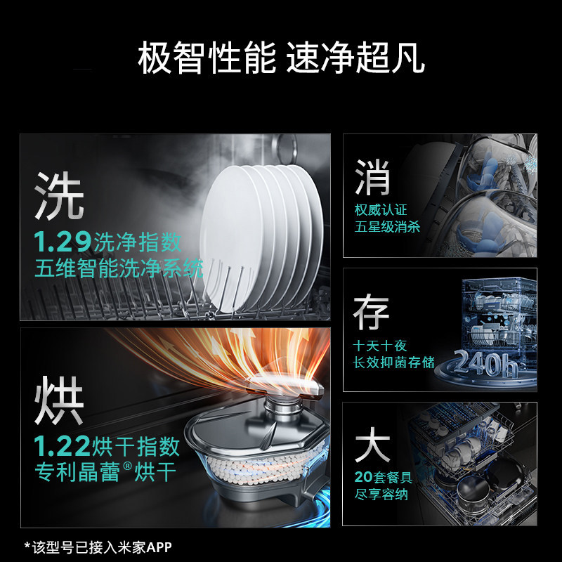 小米官旗米家洗碗机13套大容量三重强烘干灶下嵌入式1级水效母婴