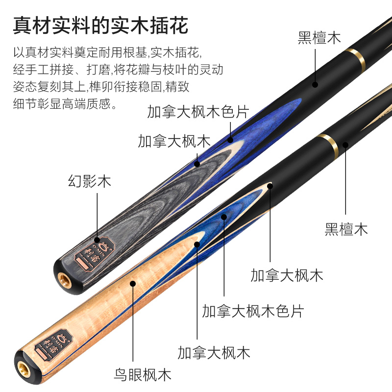 omin奥秘血魔台球杆中式黑8球杆斯诺克通杆小头分体八球杆桌球杆