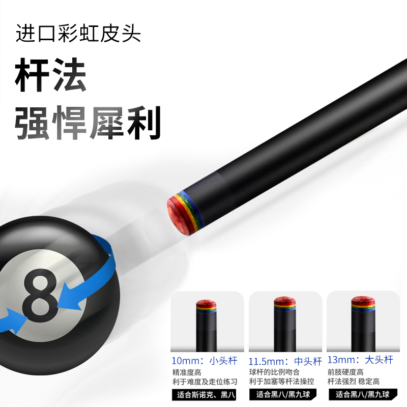 台球杆小头du药AR美式九球杆桌球杆中式黑八8球台球杆大头