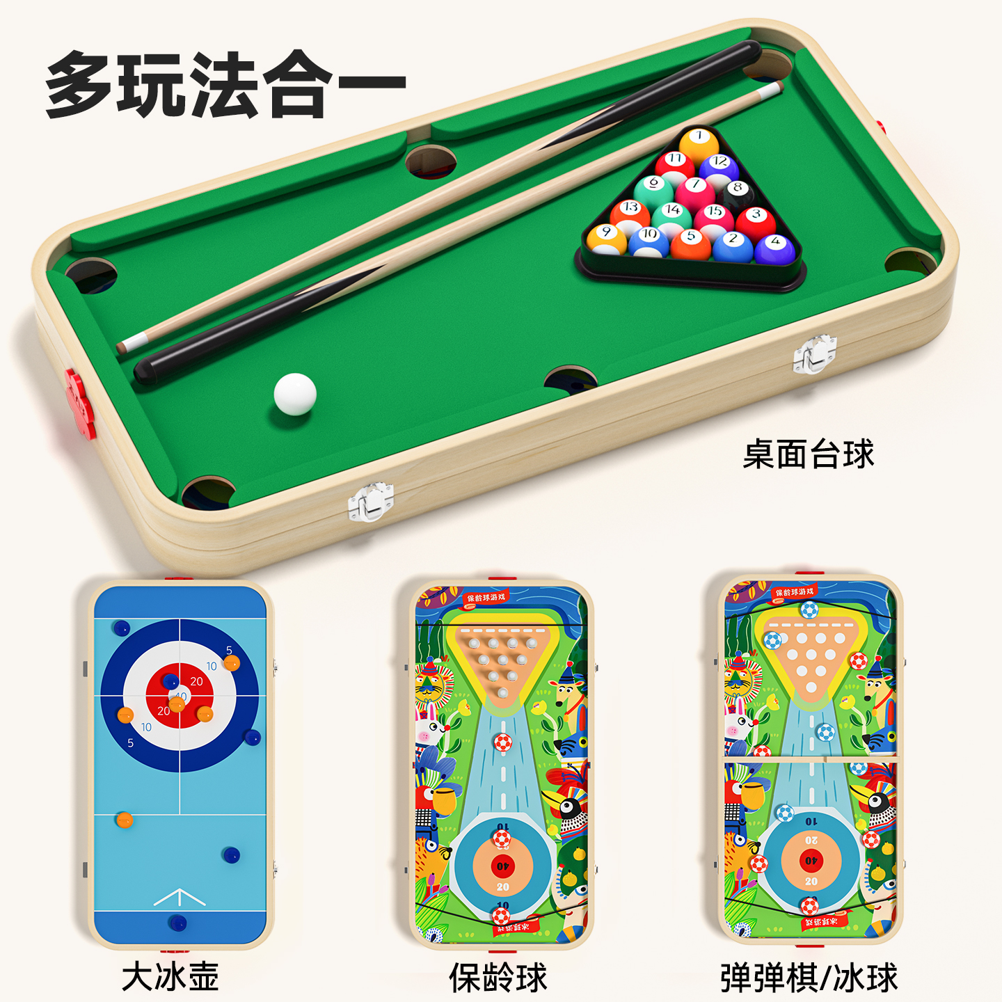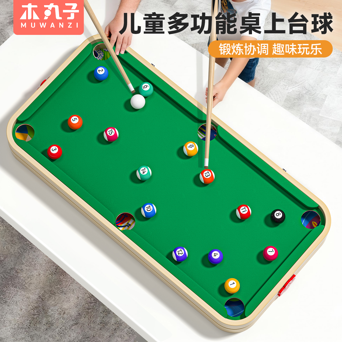 淘儿童带脚台球桌球桌家用木制迷你多功能桌游玩具桌上台球3-6岁