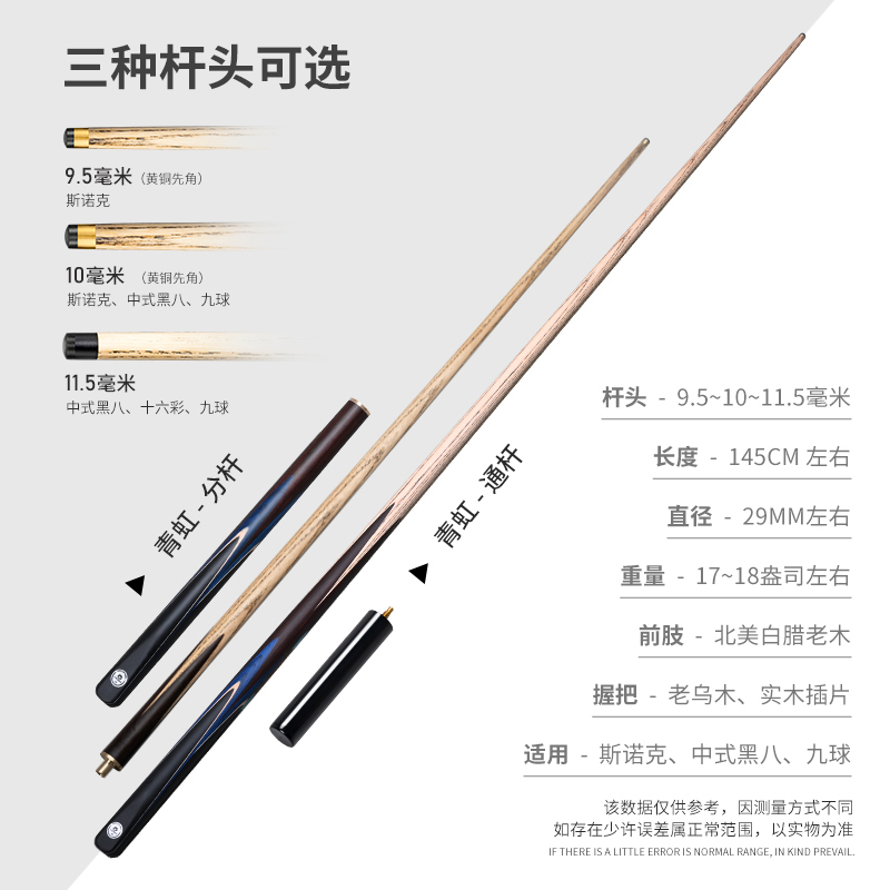 omin奥秘台球杆海之蓝正品小头分体中式黑8球杆斯诺克入门级新手