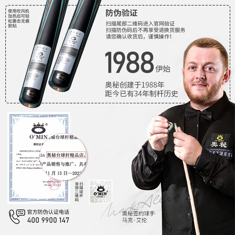 淘omin奥秘台球杆海之蓝正品小头分体中式黑8球杆斯诺克入门级新手