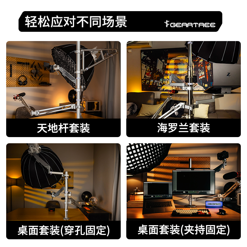 天猫Ulanzi优篮子Geartree设备树小隼FALCAM天地杆支架抖音短视频补灯光直播间拓展组合架金属支架
