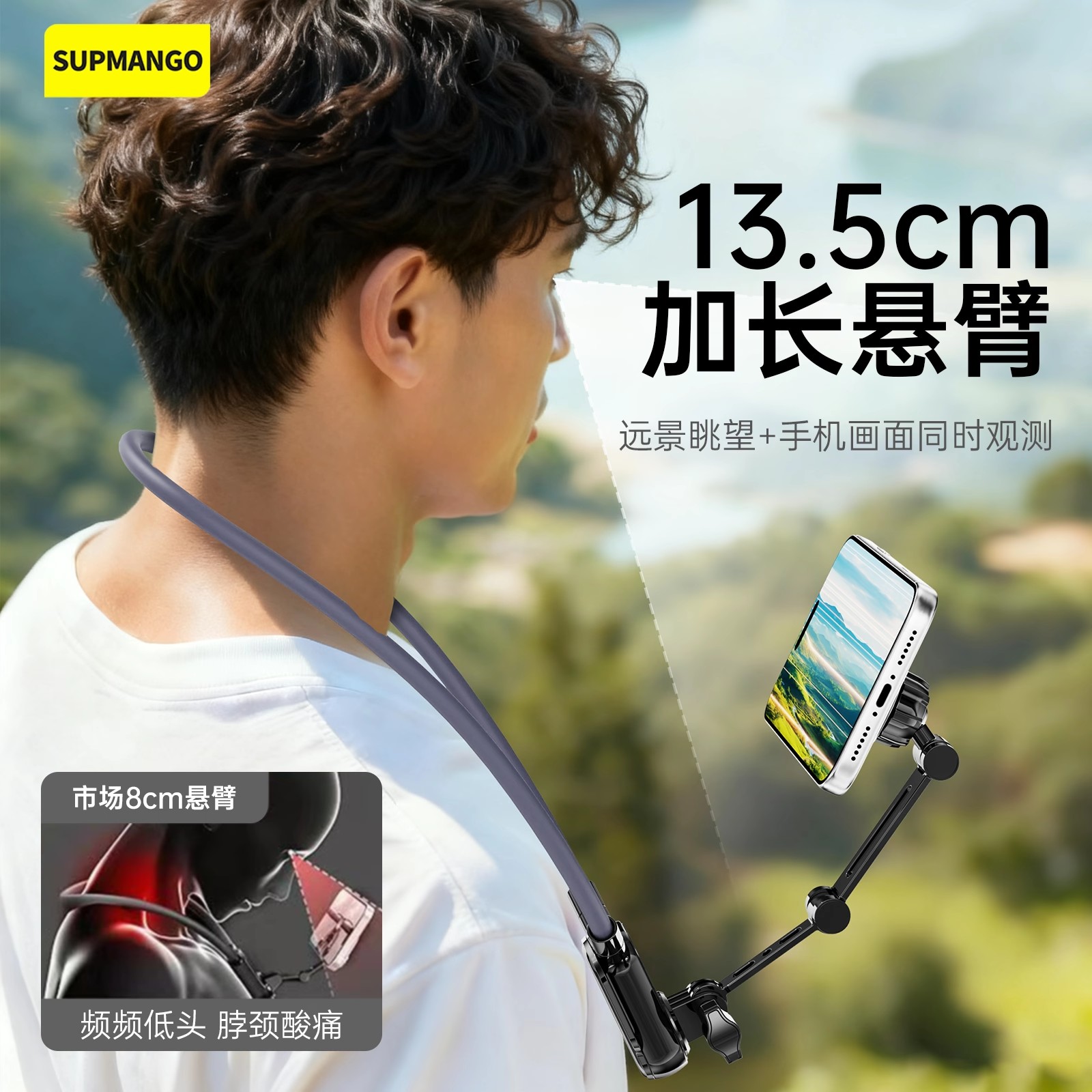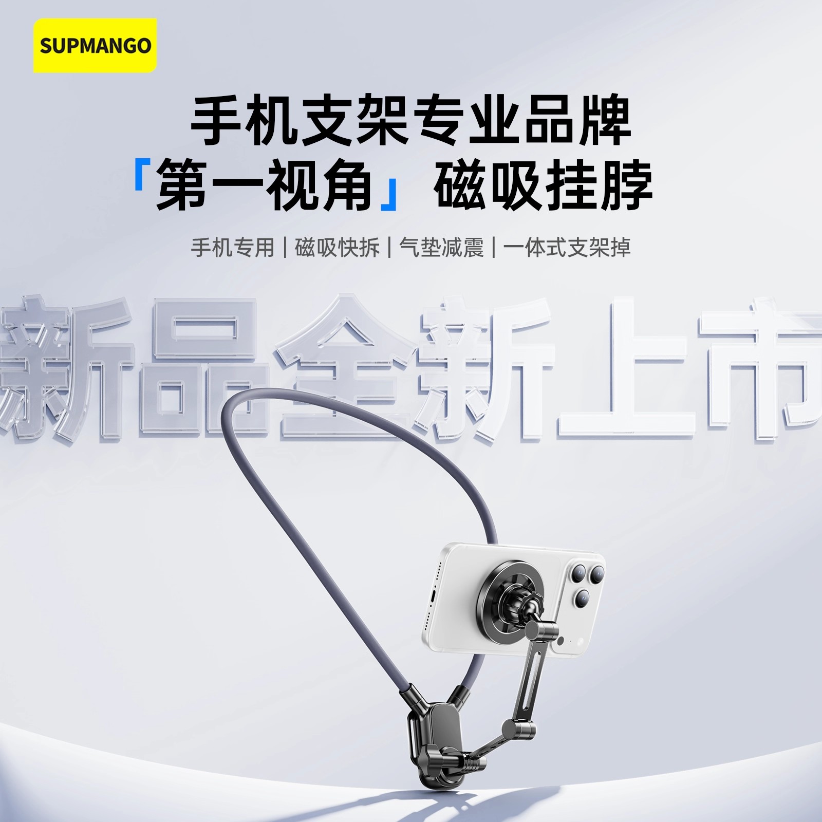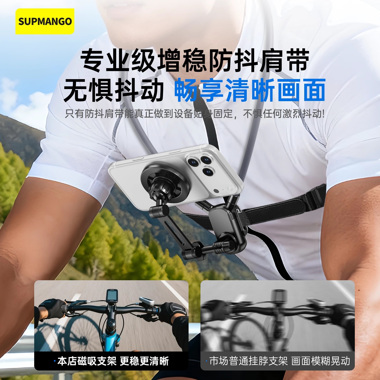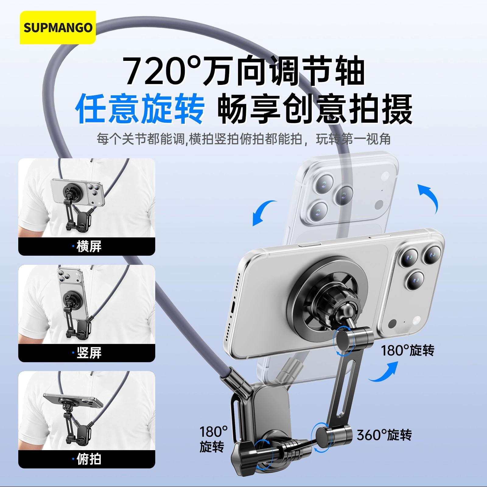 天猫挂脖手机支架第一视角拍摄设备磁吸防抖全景相机胸前固定脖子vlog拍摄神器骑行钓鱼直播运动相机通用