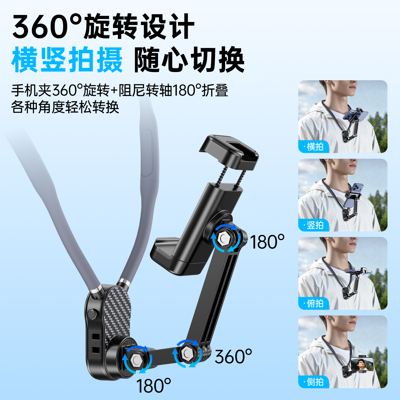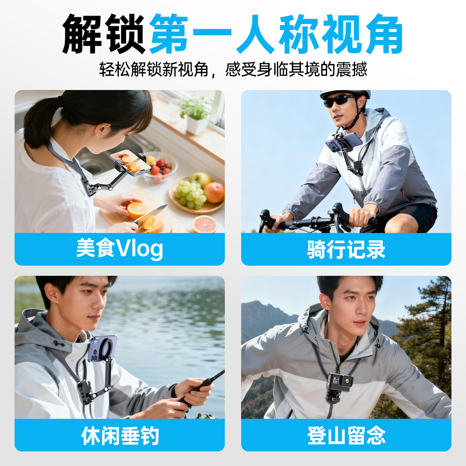 天猫挂脖手机支架第一视角拍摄设备磁吸防抖全景相机胸前固定脖子vlog拍摄神器骑行钓鱼直播运动相机通用