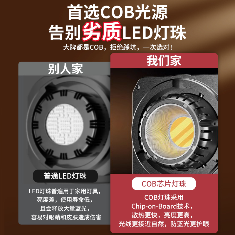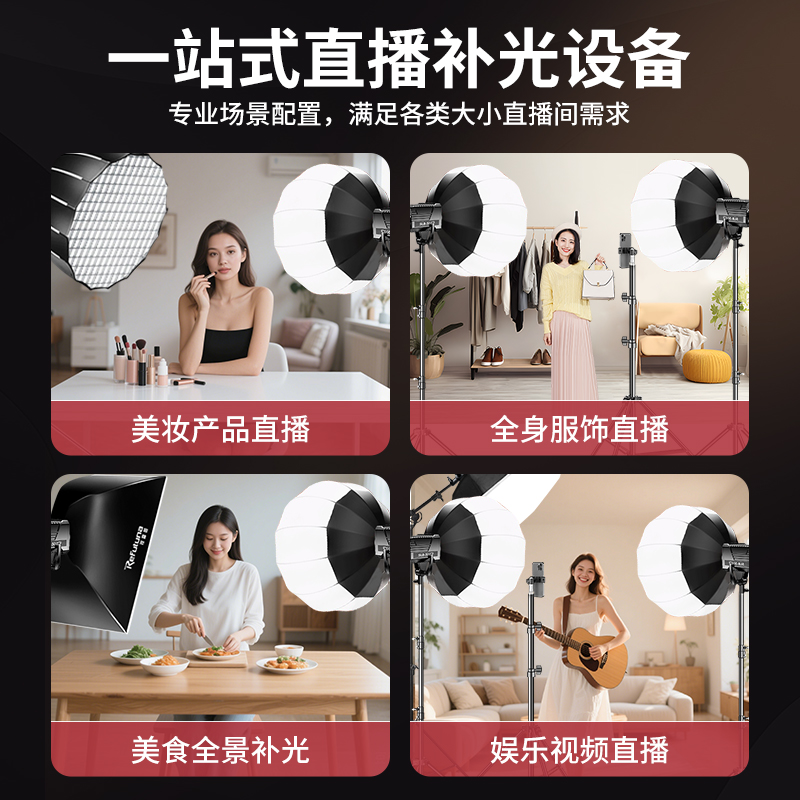 天猫锐富图高亮COB直播补光灯主播专用摄影灯专业直播间球形灯柔光灯光设备全套网红美颜拍照绿幕服装圆形打光灯