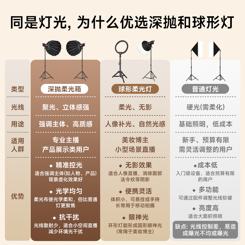 专业直播补光灯主播专用直播间美颜顶灯服装拍照led室内灯文玩拍摄影棚打光设备球形摄影灯格栅八角柔光箱