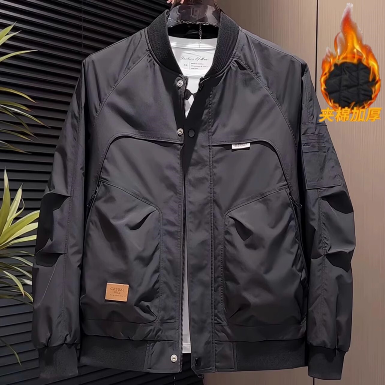 淘2025新款男士外套春秋季修身休闲夹克秋冬立领棒球服加绒加厚上衣