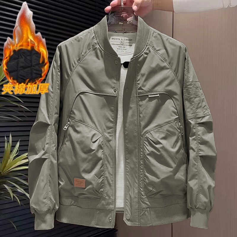 2025新款男士外套春秋季修身休闲夹克秋冬立领棒球服加绒加厚上衣
