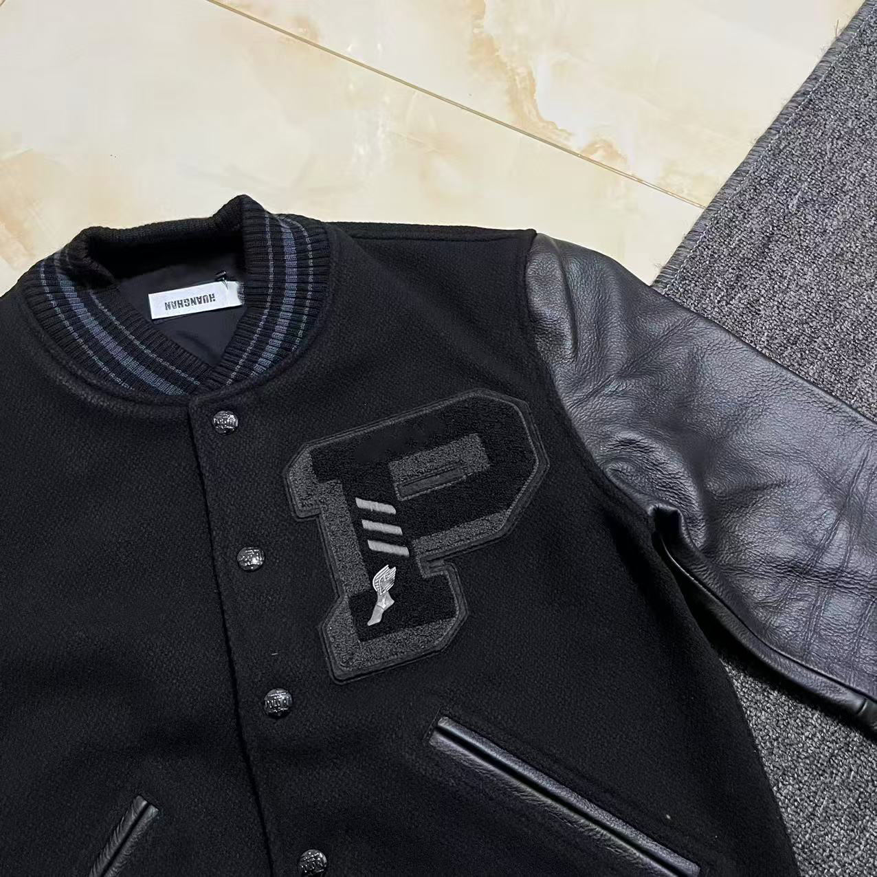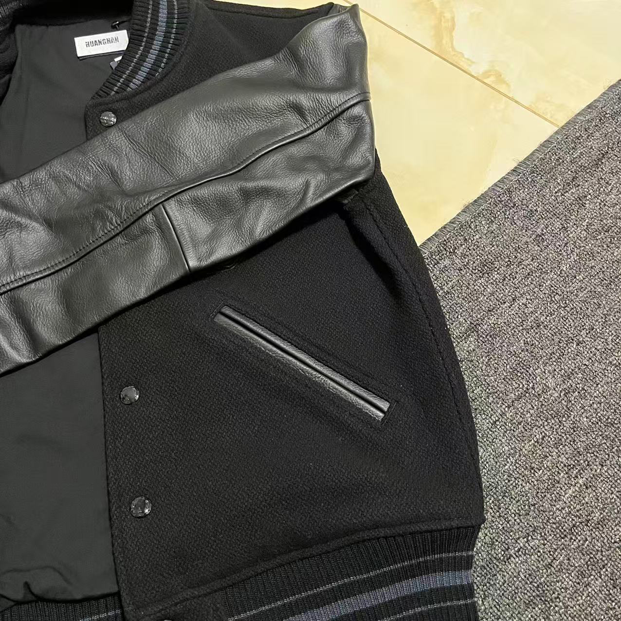 淘宝破锣牛皮袖男装皮衣棒球服立领真皮美式夹克外套保暖羊毛皮袖外套