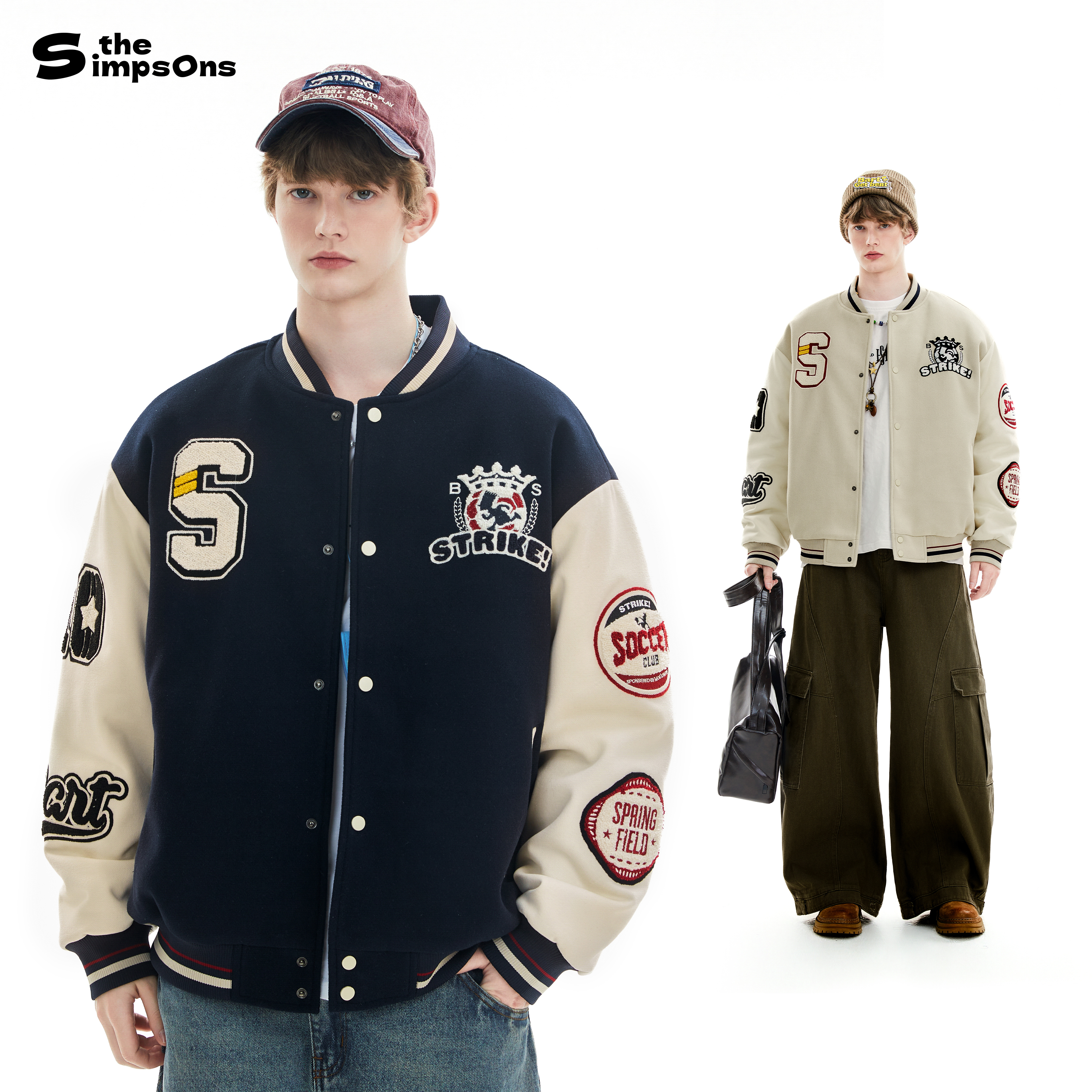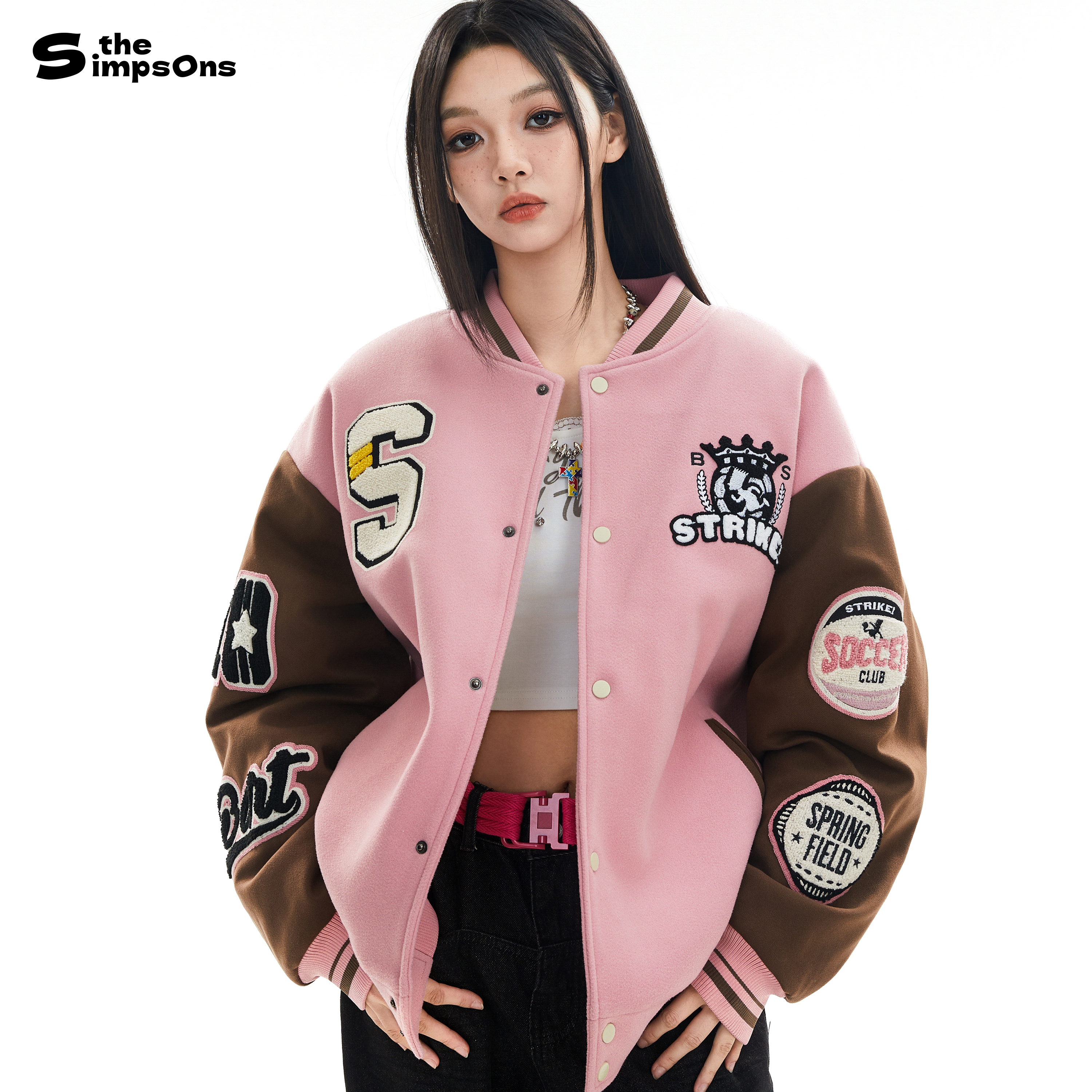 淘宝辛普森一家棒球服外套男士秋冬加厚情侣美式飞行夹克黑色夹棉服女
