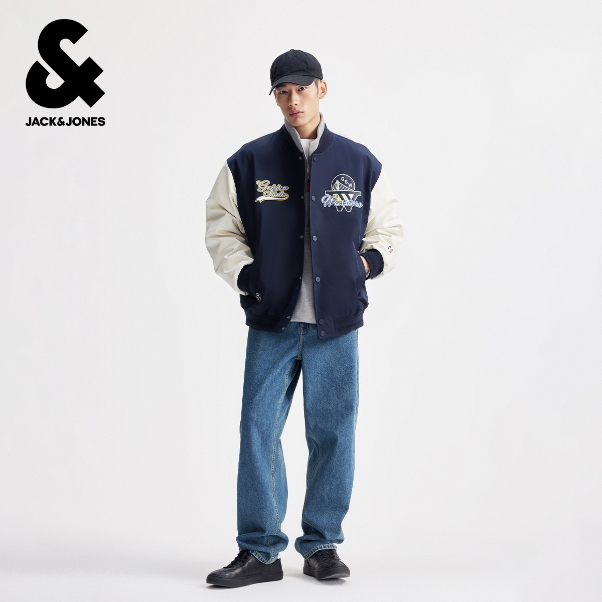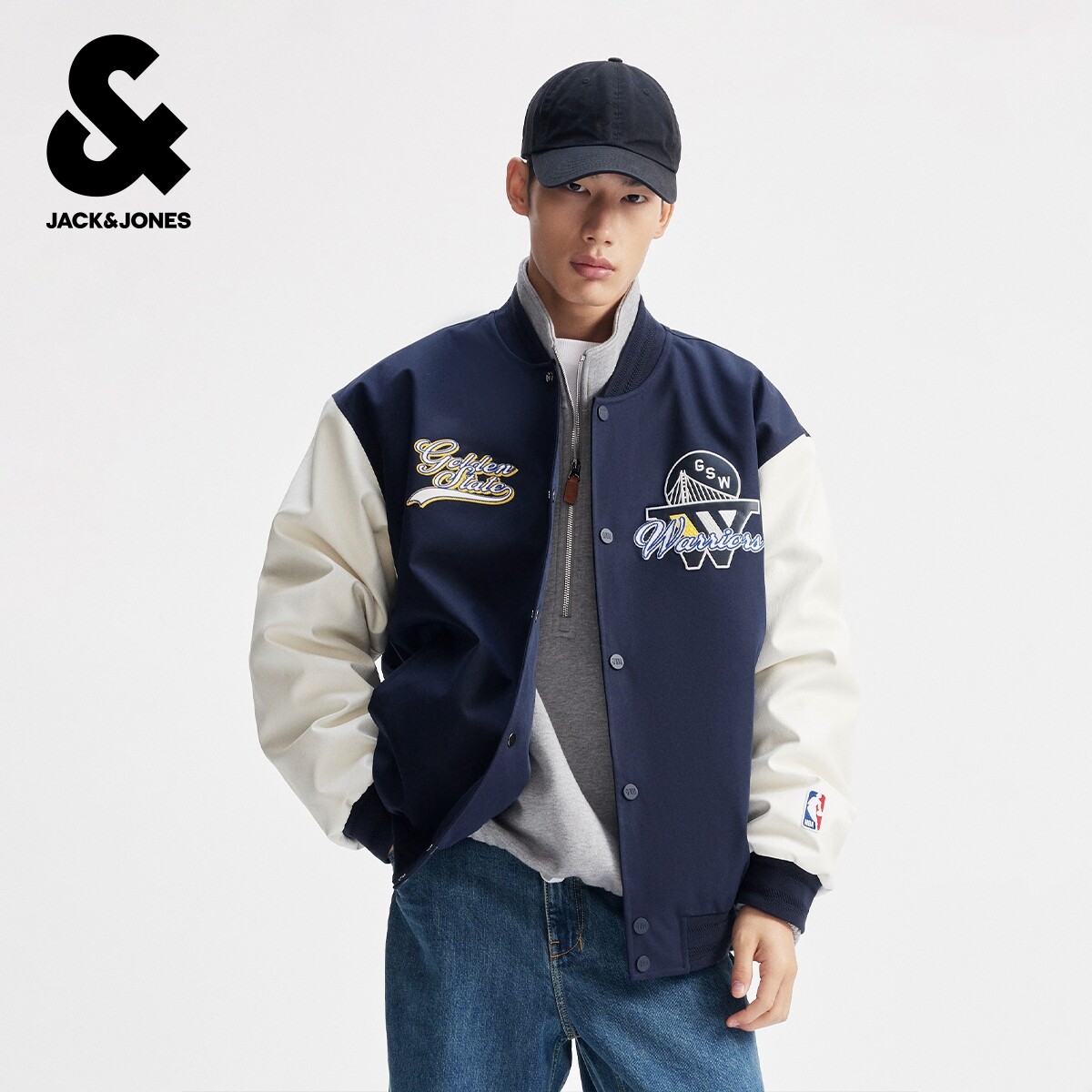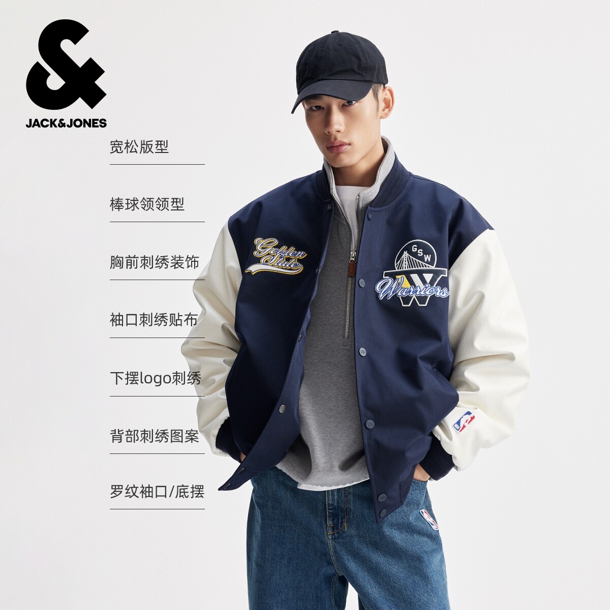 杰克琼斯携手NBA,于2026春季推出联名款潮流男装羽绒服,融合运动基因与都市型格。这款宽松棒球领外套采用轻盈防风面料,兼具保暖性与透气感,适合早春多变气候。经典棒球领设计搭配 oversized 剪裁,彰显随性街头风格,袖臂及胸前融入NBA球队徽章元素,细节尽显联名特色。多口袋实用布局与拉链开合设计,兼顾功能与时尚。配色以经典黑、军绿及球队主题色为主,轻松搭配卫衣、工装裤等单品,打造动感型男造型。杰克琼斯×NBA,将球场激情注入日常穿搭,引领2026春夏潮流新风尚。