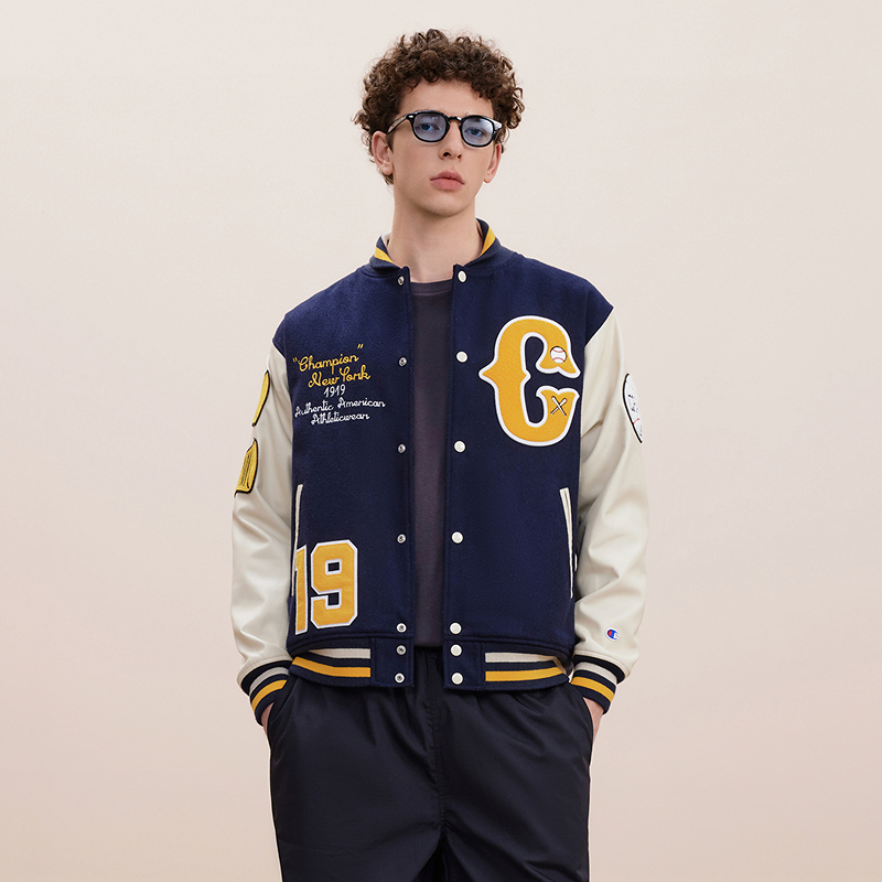 天猫Champion冠军棒球服男秋冬款拼接夹克女美式复古校园风潮棉服外套