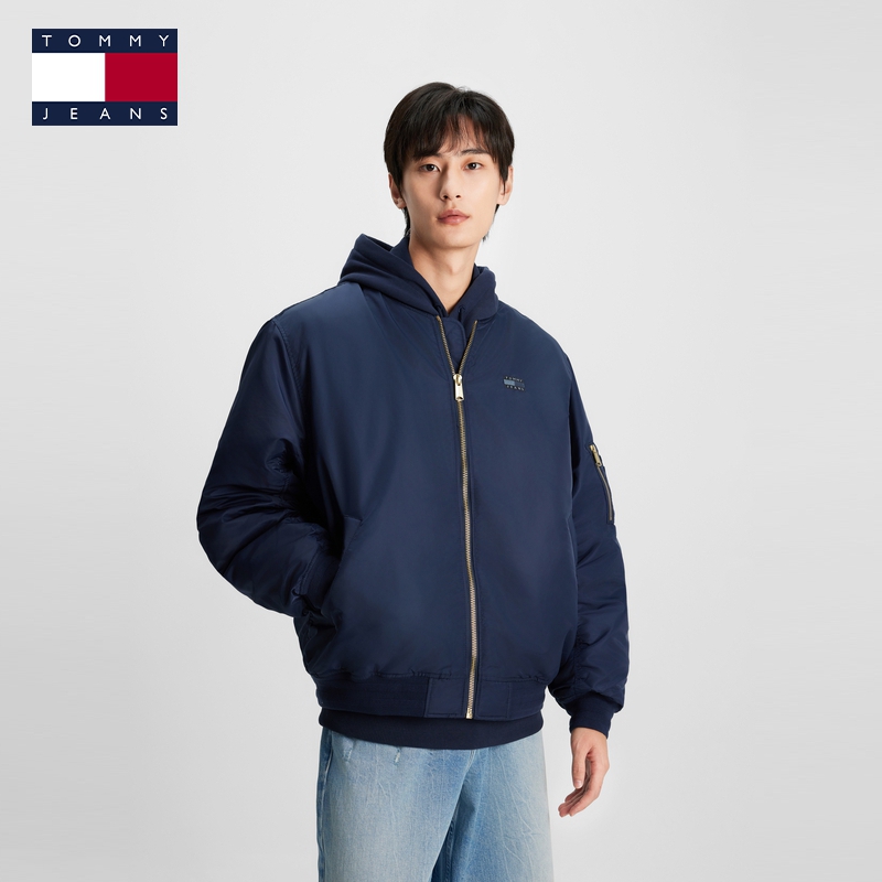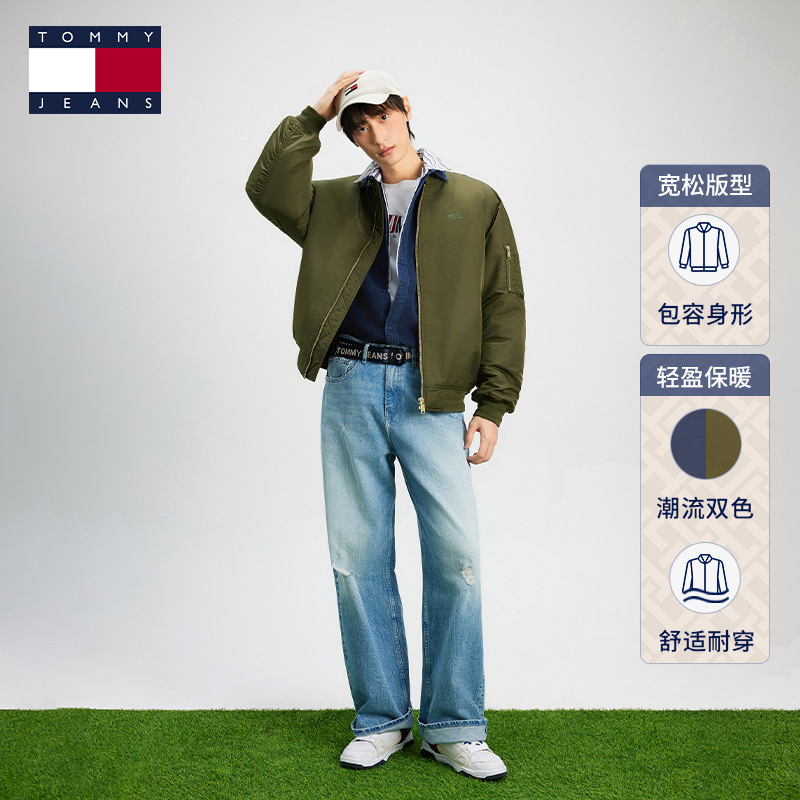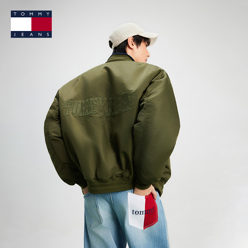 天猫Tommy男女美式学院刺绣棒球领宽松轻暖飞行员棉服夹克外套