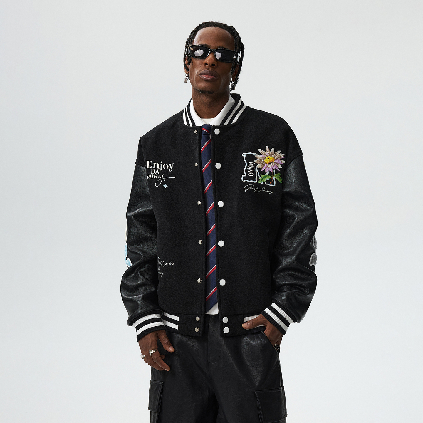 悟空有货美式复古刺绣拼接棒球服男潮牌宽松情侣百搭高街休闲外套
