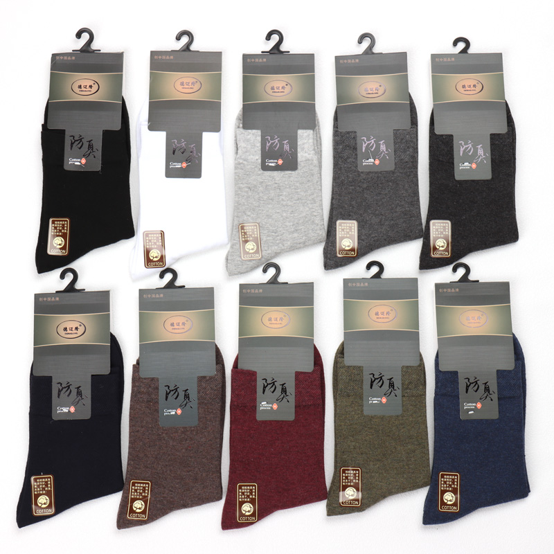 淘恒源祥袜子男士爸爸袜100%纯棉防臭网眼夏季中筒男袜商务全棉长袜