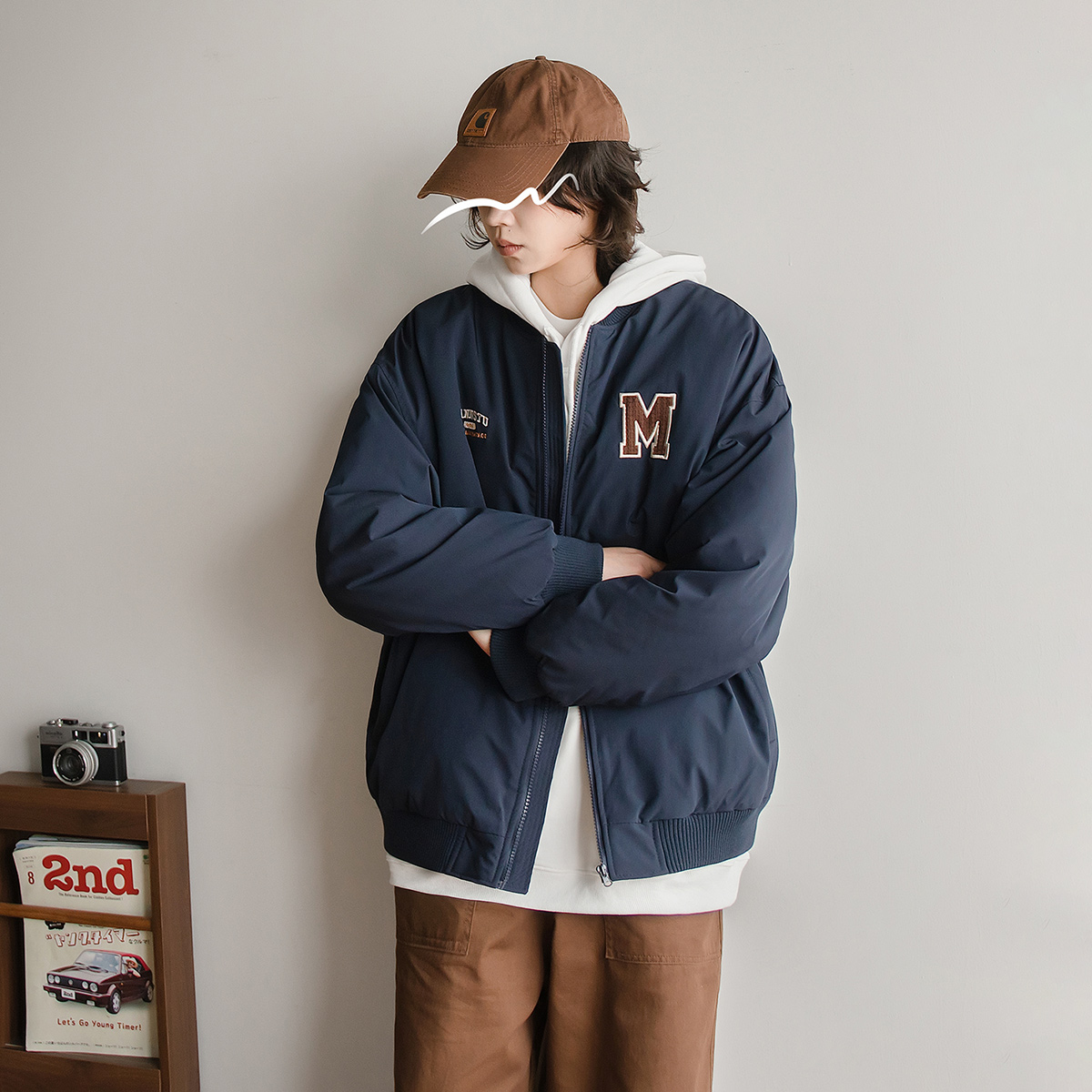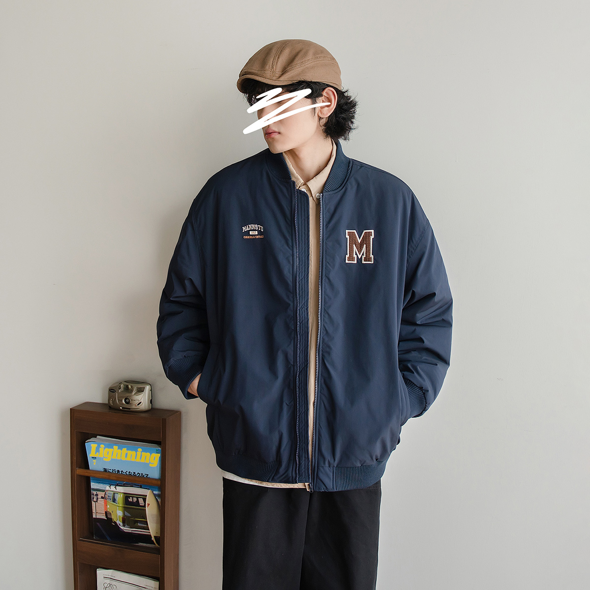BOLM冬季日系字母贴布绣棒球棉服男美式夹克加厚拼色棉衣外套棉袄