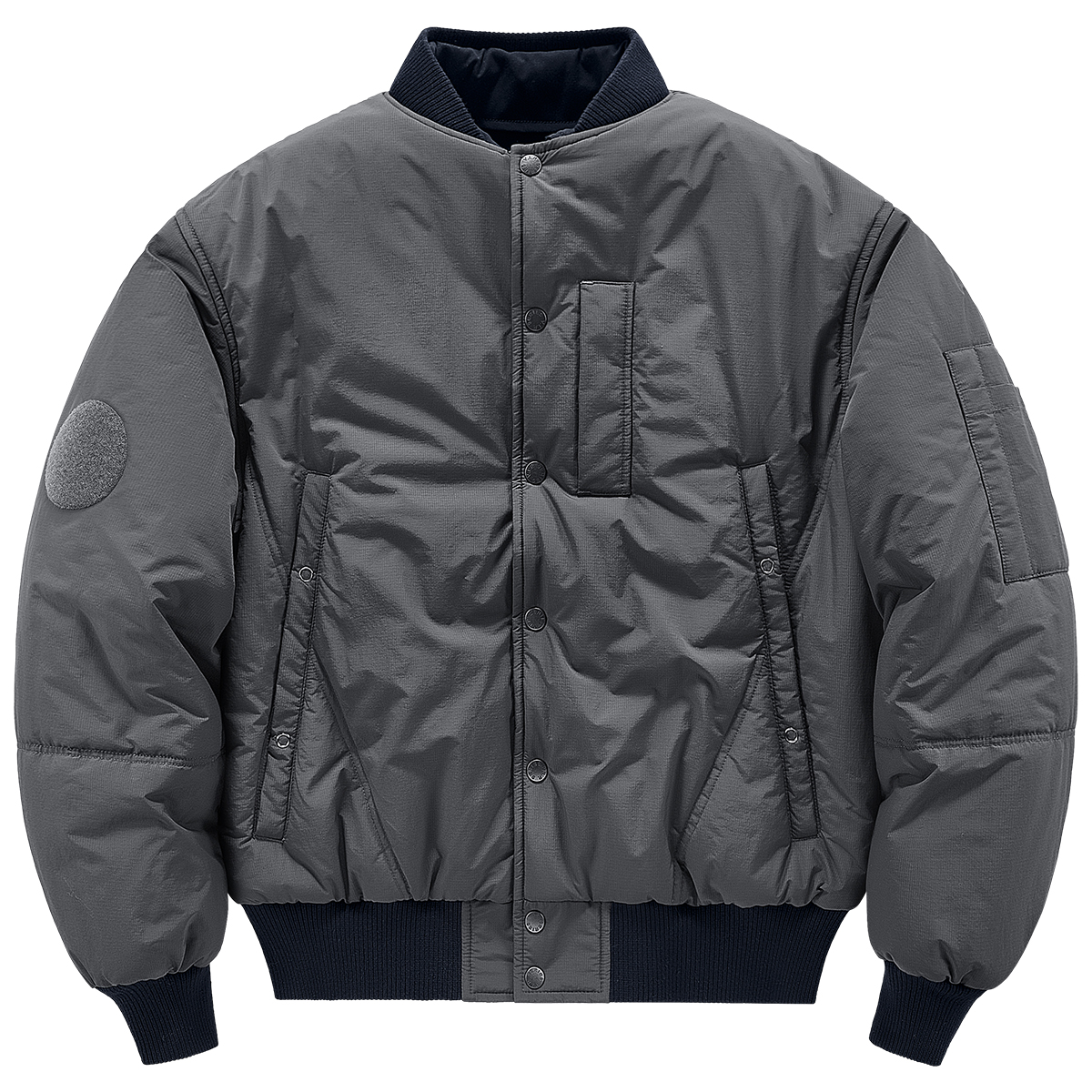 天Tommy秋冬男装学院双面穿亮面提花棒球飞行保暖棉服夹克外套