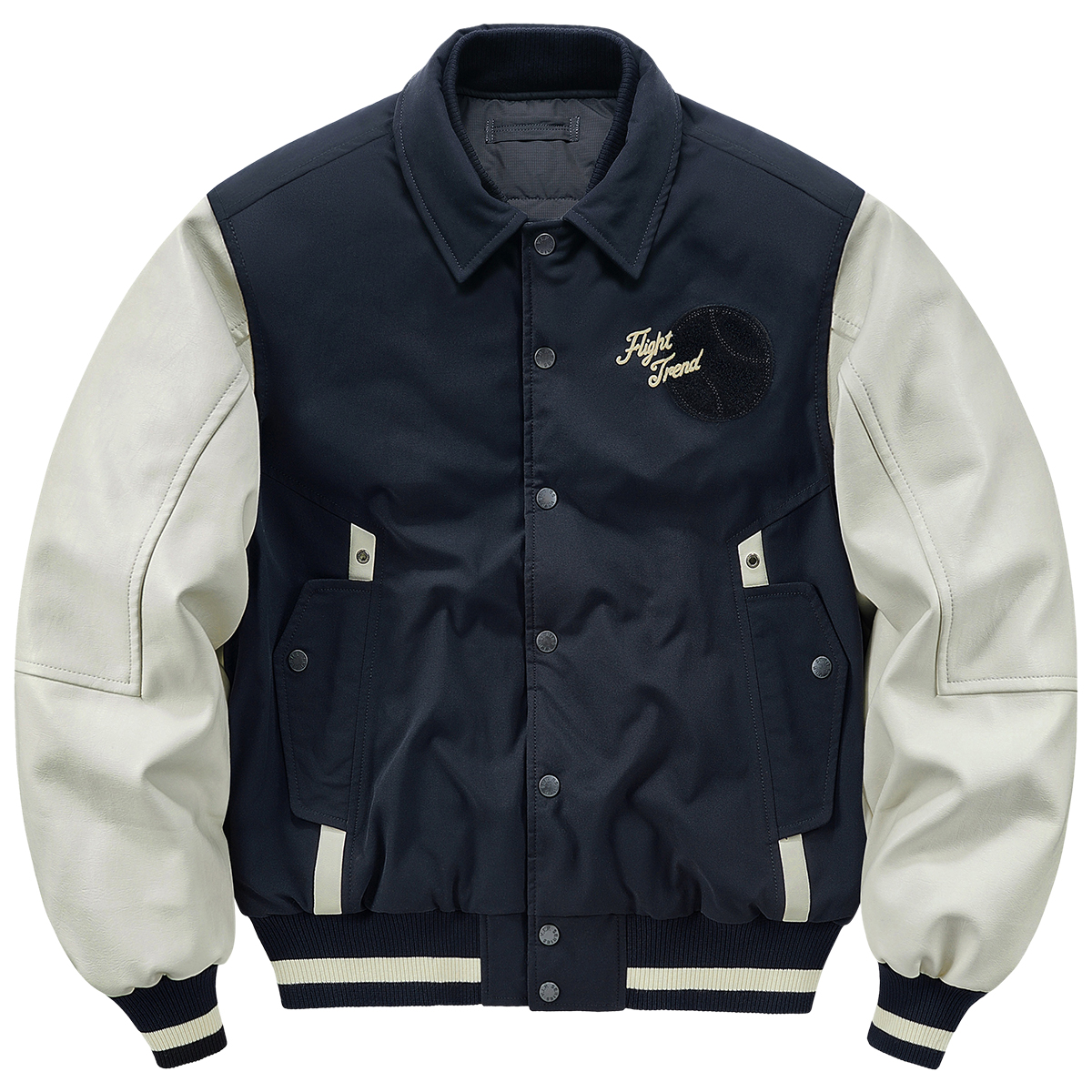 天猫VIP美式复古双面穿翻领棒球服棉衣男秋冬毛巾绣夹棉加厚拼接外套