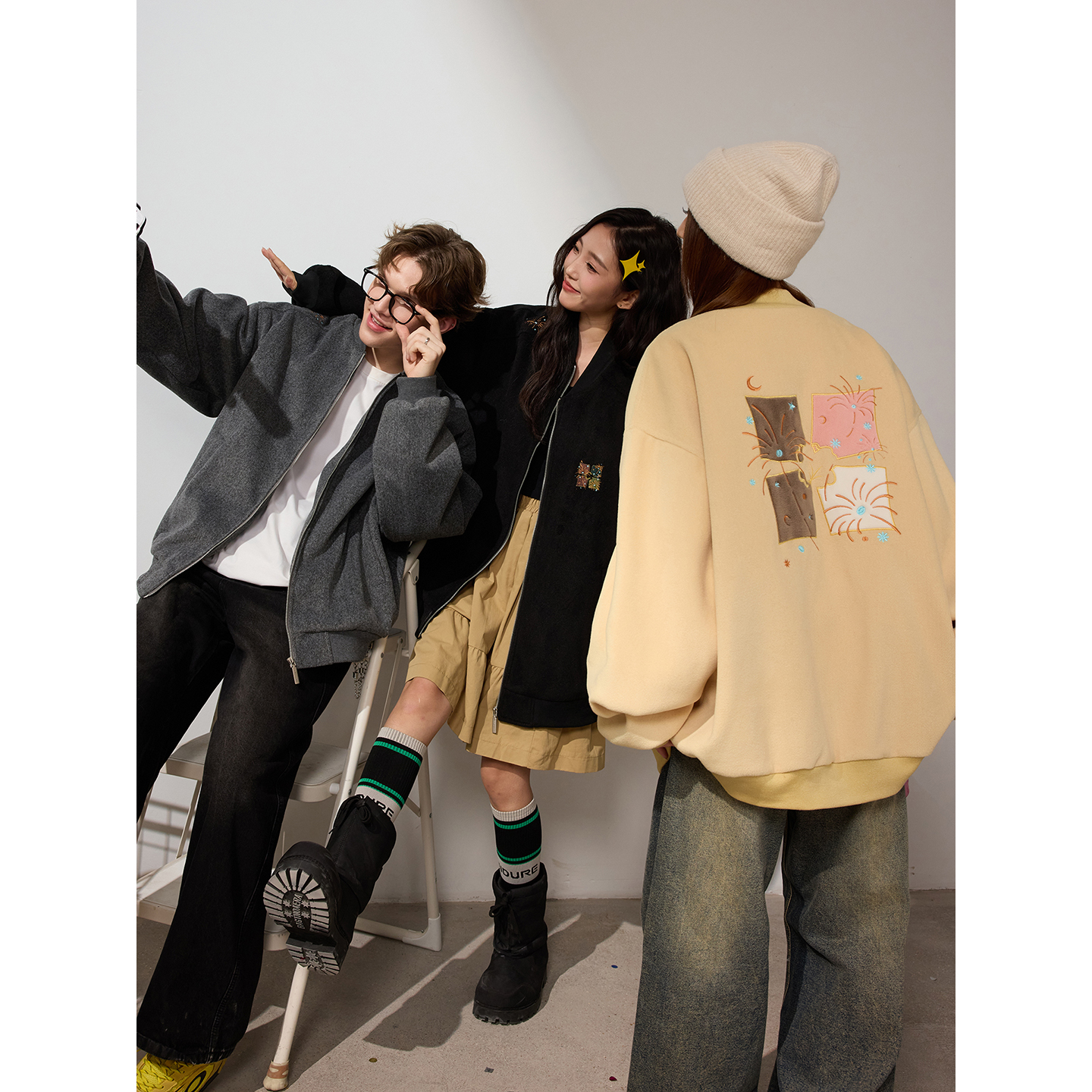 悟空有货美式复古拼接棒球服夹克男女2025秋季高级感boxy版型外套