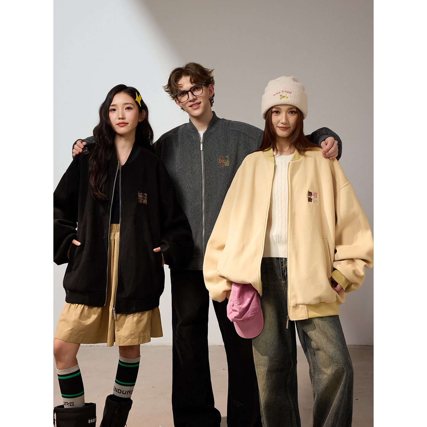 BODYDREAM字母贴布刺绣棒球服夹克男女秋装复古撞色拼接情侣外套