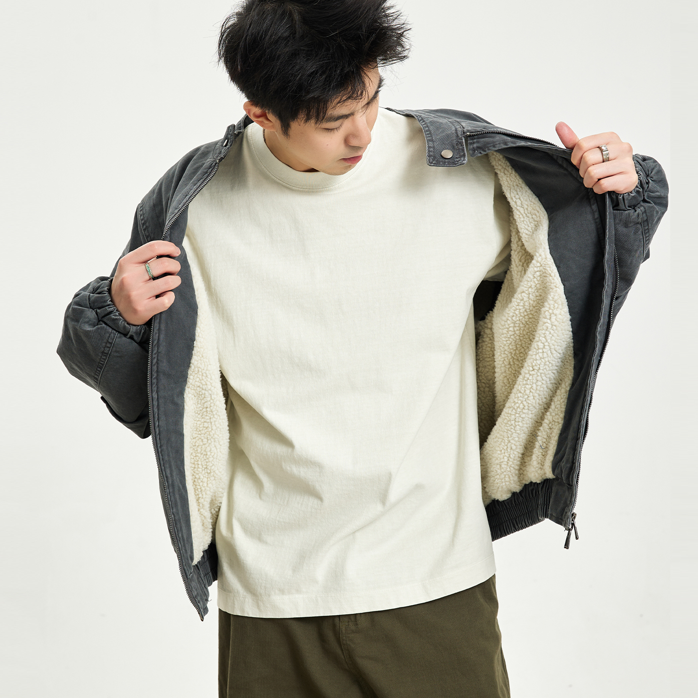 林弯弯复古工装飞行员棒球服夹克棉衣秋冬羊羔毛加厚外套男