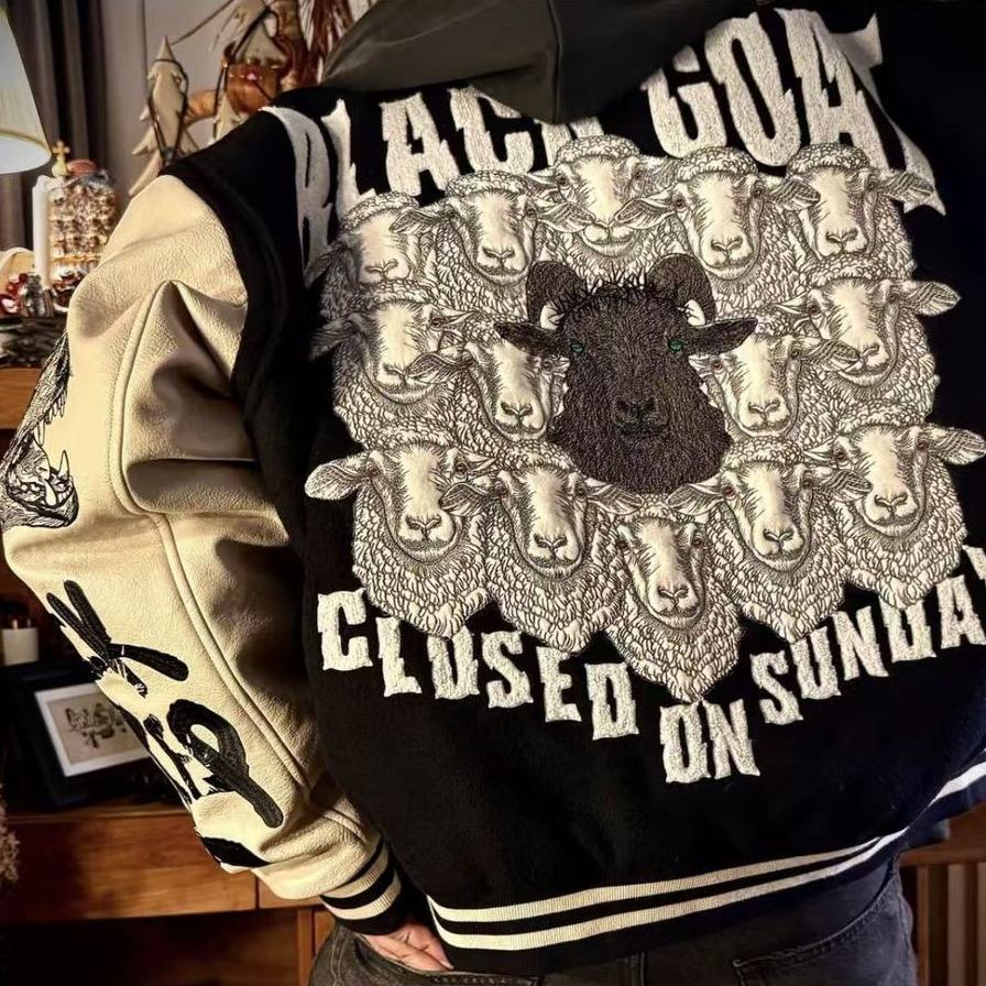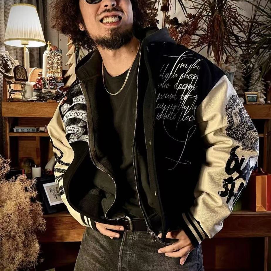淘宝美式休闲重磅害群之马棒球服男潮牌宽松休闲夹棉加厚保暖夹克外套