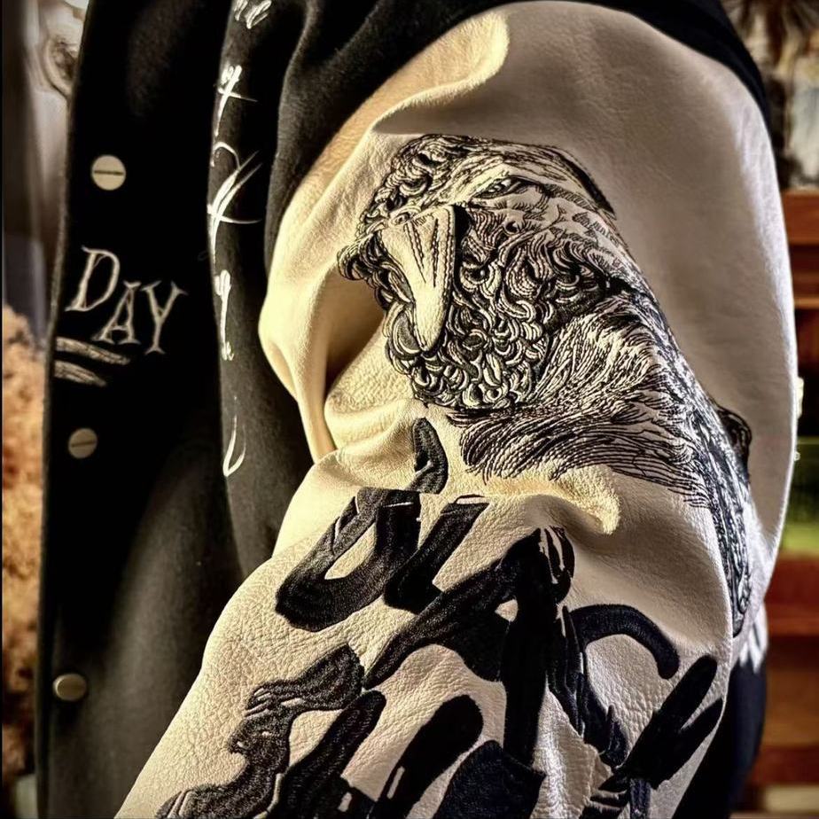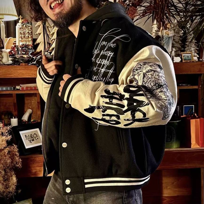 天LAMLICKA美式拼接棒球服外套男款秋冬潮牌宽松百搭开衫夹克上衣女