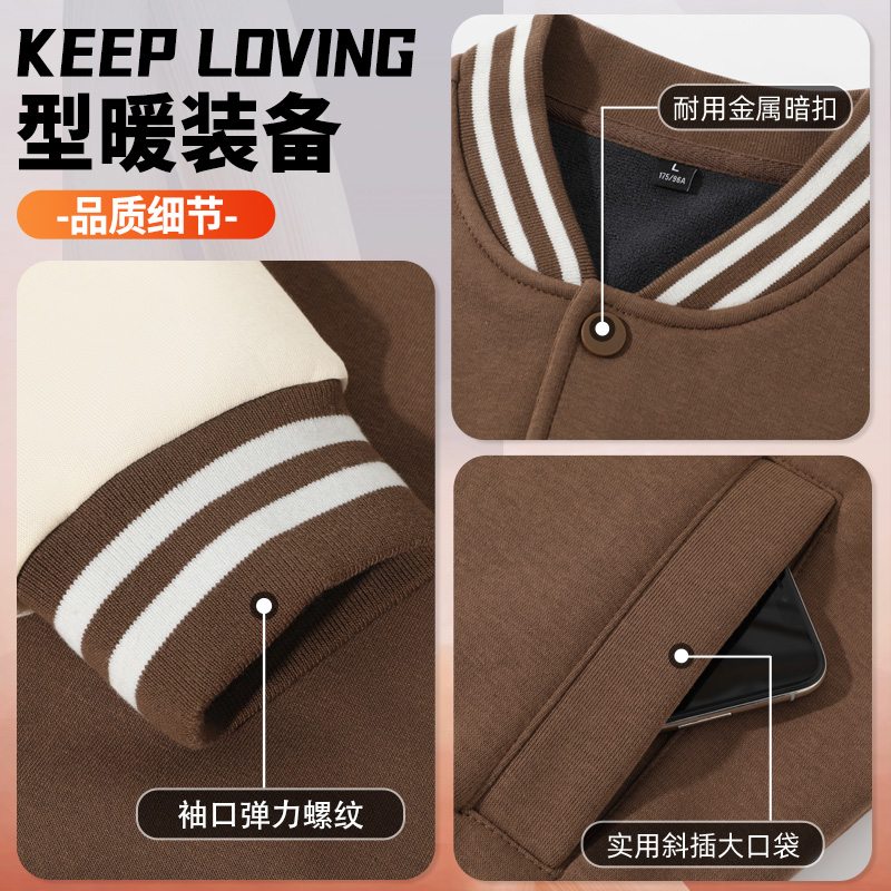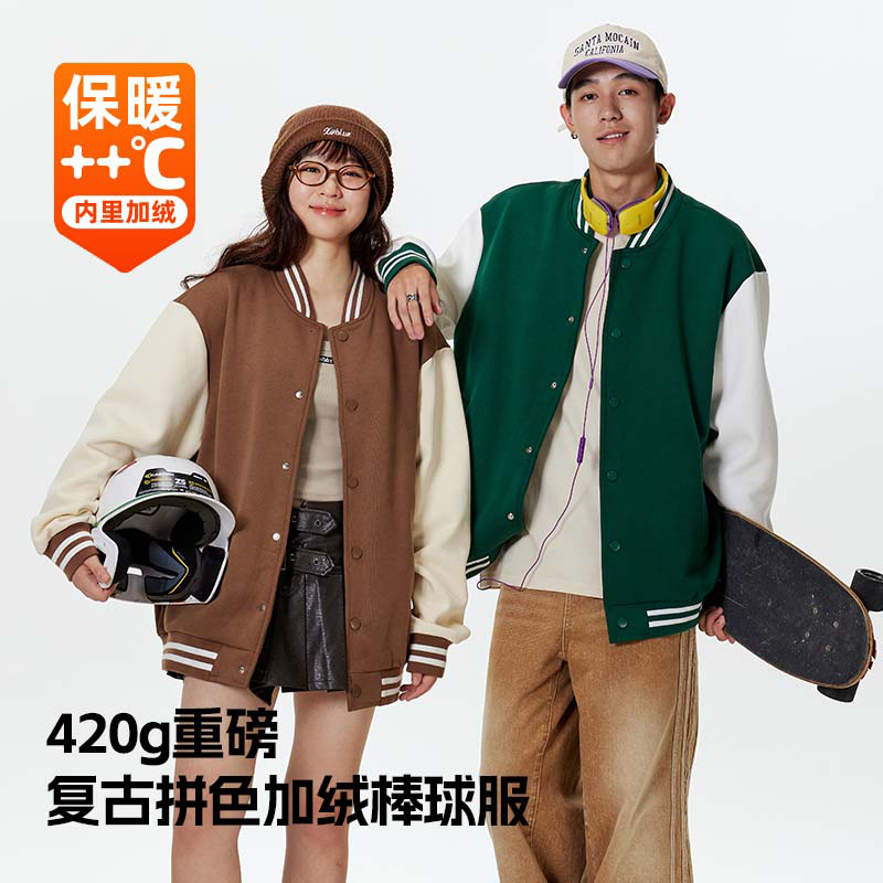 天猫回力男士棒球服秋冬季加绒加厚开衫青少年潮牌插肩撞色夹克外套K