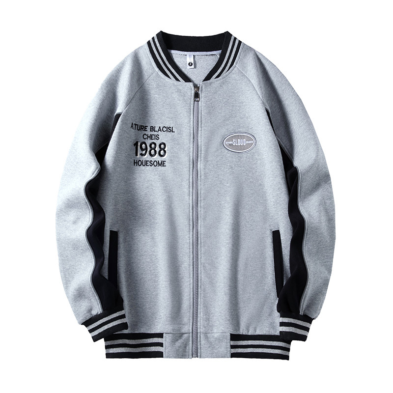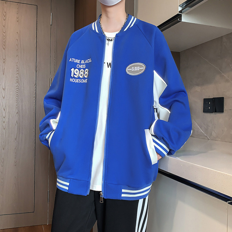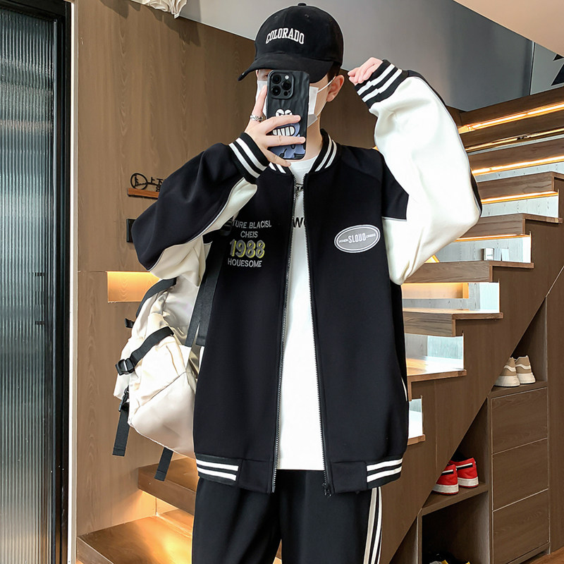 淘美式休闲!撞色百搭!外贸男装秋季减龄学院风麂皮绒棒球服外套潮