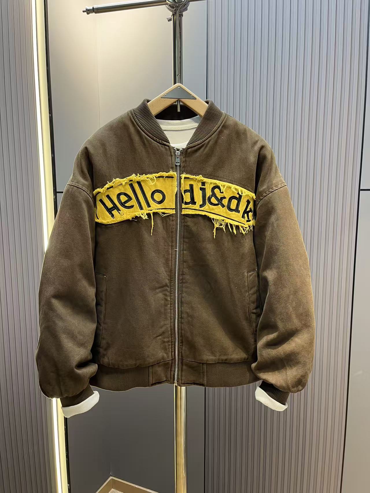 CENLES AW25 秋冬新款美式棒球服水洗喷白渐变新雪丽暖绒棉服男